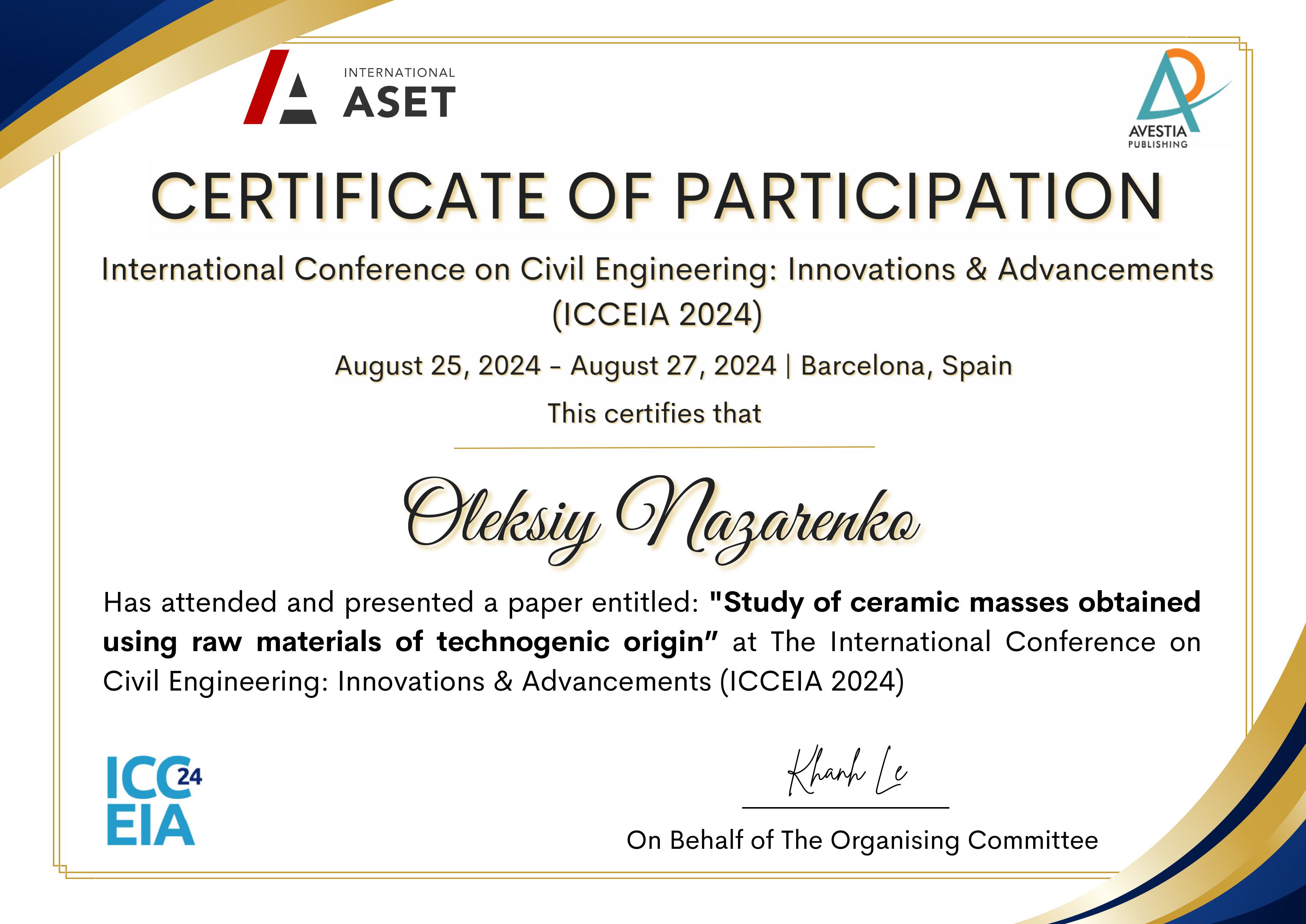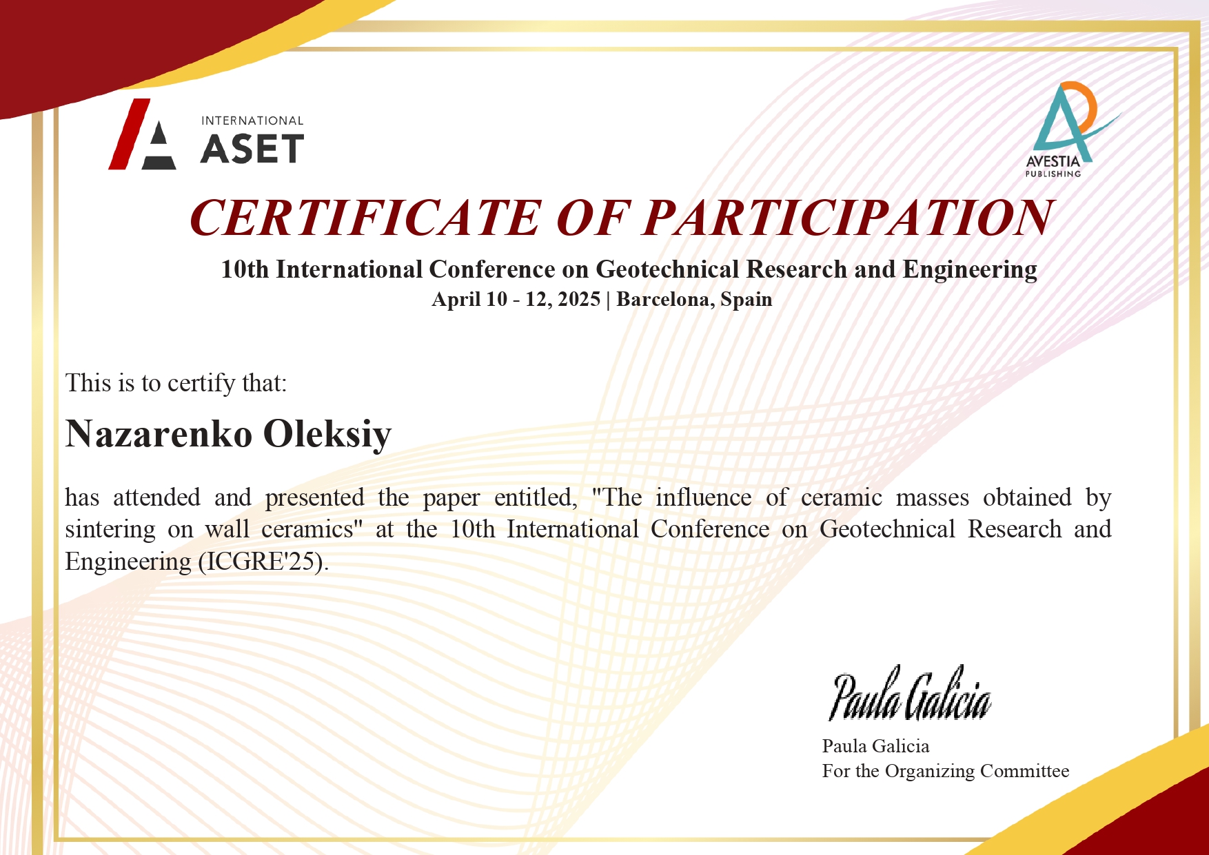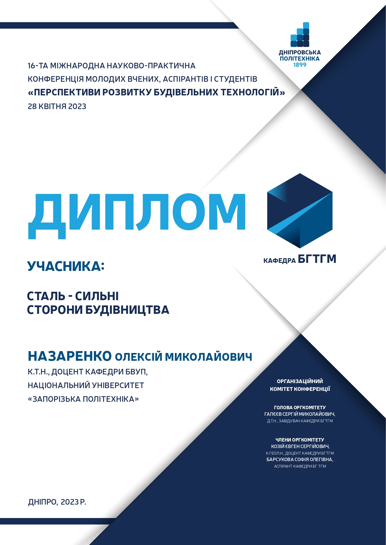 У НТУ «Дніпровська політехніка» відбулася 16-та Міжнародна науково-практична конференція молодих вчених, аспірантів і студентів «Перспективи розвитку будівельних технологій». Вітаємо доц. Назаренка О.М. з отриманням диплому!