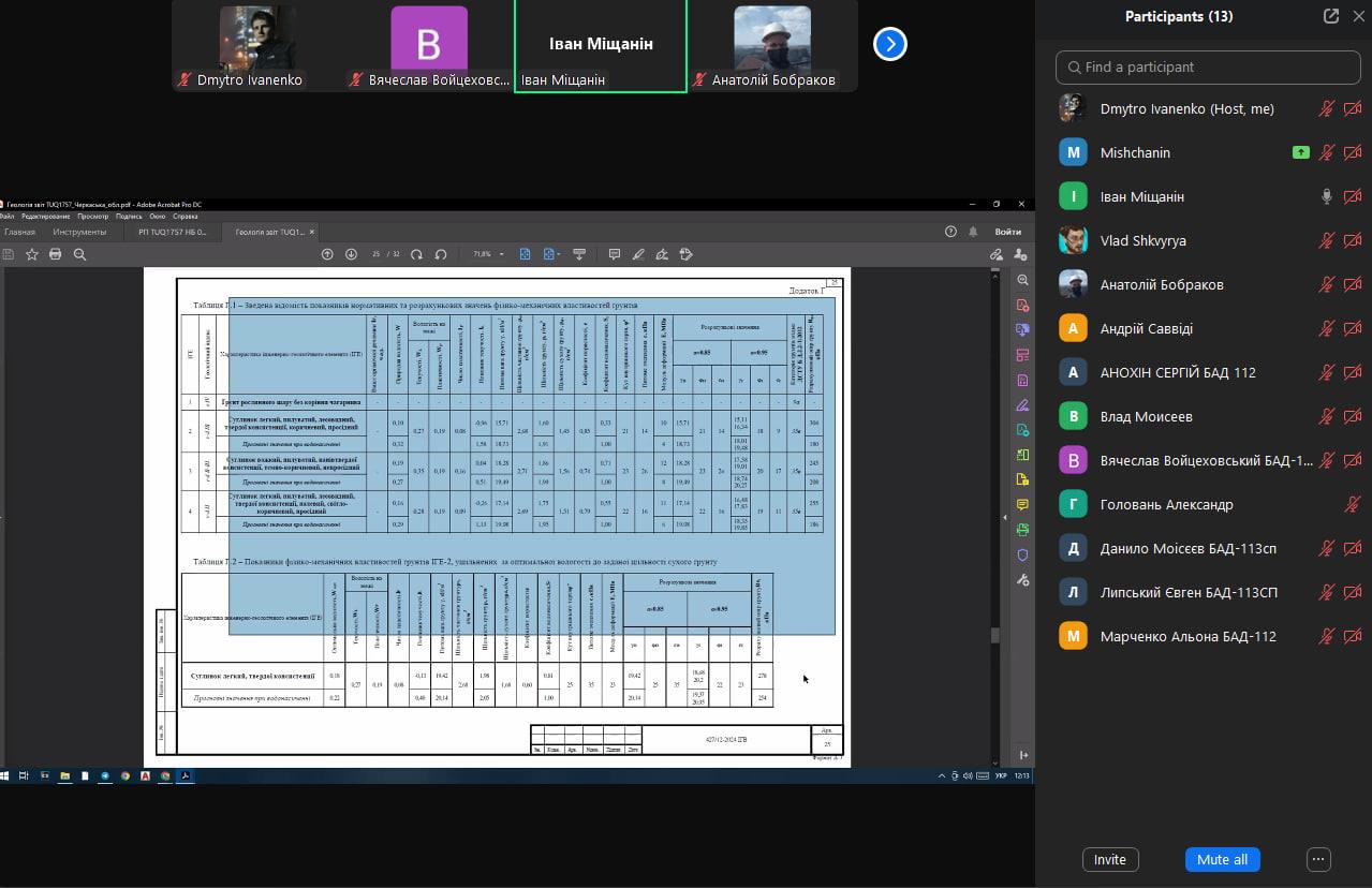 Обговорили питання більшого впровадження практичних у освітні компоненти «Залізобетонні та кам'яні конструкції», «Основи і фундаменти» та більш ширшої подачі тематик з цих освітніх компонент. Богдан Олександрович та Олег Денисович, звернули увагу на потребу більш ширшого розгляду у освітньому компоненті «Будівельне матеріалознавство» сучасних будівельних матеріалів для оздоблювання внутрішніх та зовнішніх поверхонь елементів будівель, огляду сучасної виробничої база та фірм, що випускають будівельні оздоблювальні матеріали. Було обговорено майбутнє проходження практик на підприємстві здобувачів третього та четвертого курсів.