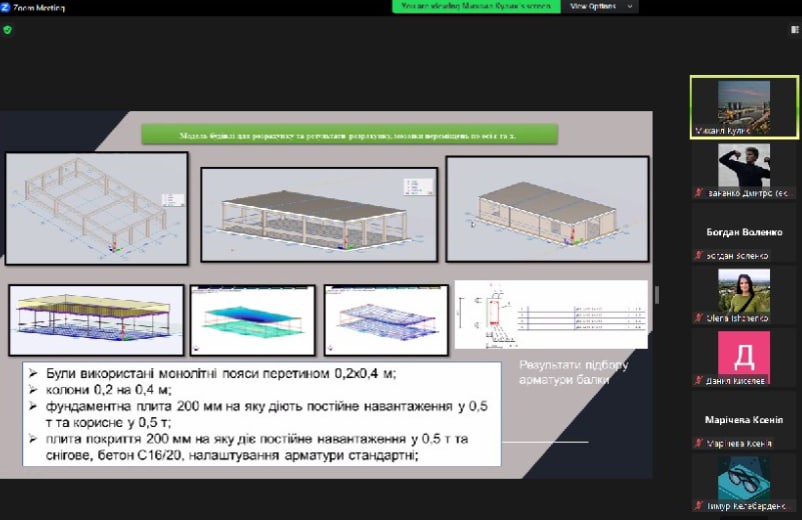 Сьогодні в онайлн режимі відбувся вебінар з представниками кафедриЦивільної інженерії, технологій будівництва і захисту довкілля Дніпровського державного аграрно-економічного університету, в якому взяли участь викладачі та студенти кафедри БВУП. Були розглянуті питання розрахунку і конструювання залізобетонних та кам’яних будівельних конструкцій, а також оволодіння принципами проектування, методами компонування та техніко-економічного аналізу залізобетонних та кам’яних конструкцій.