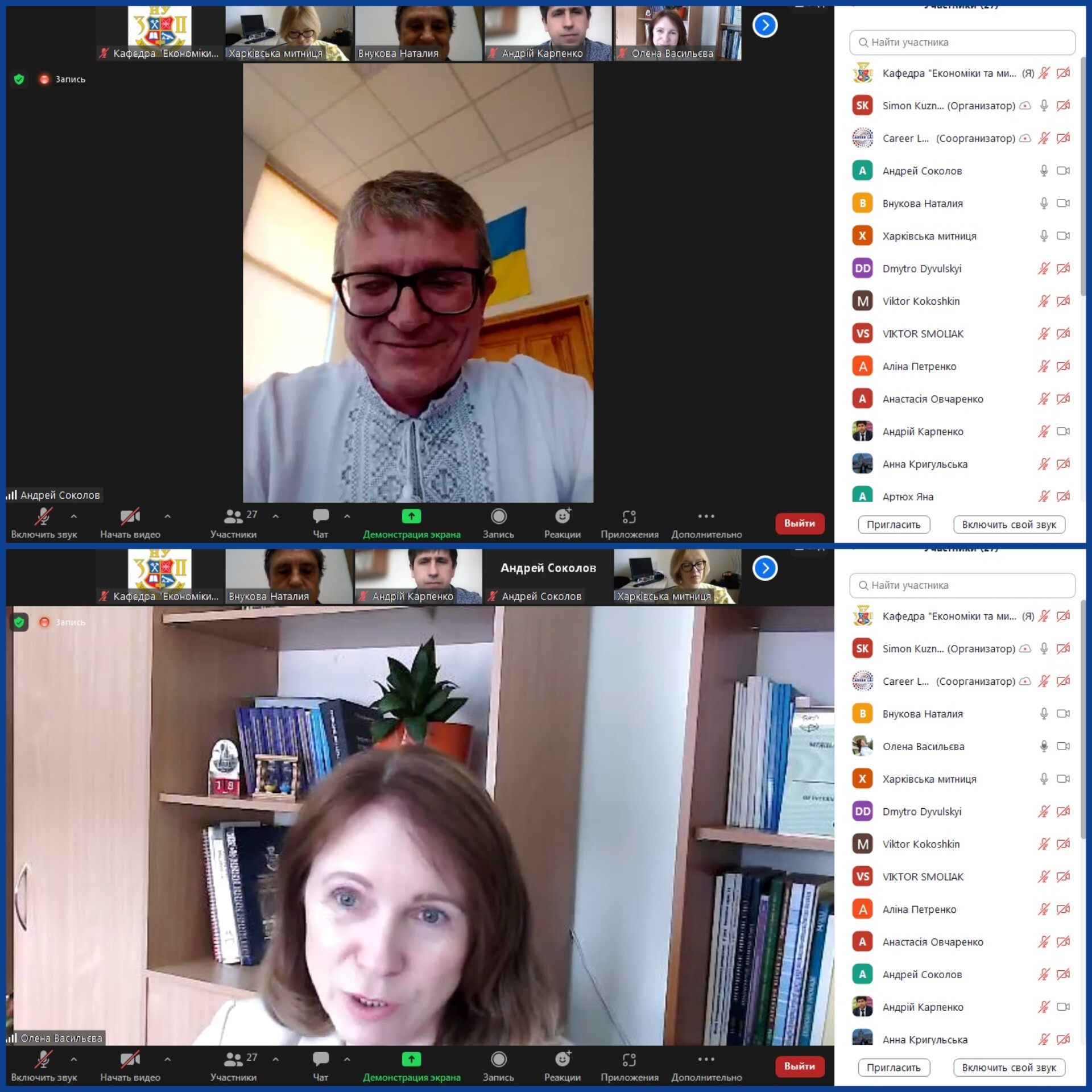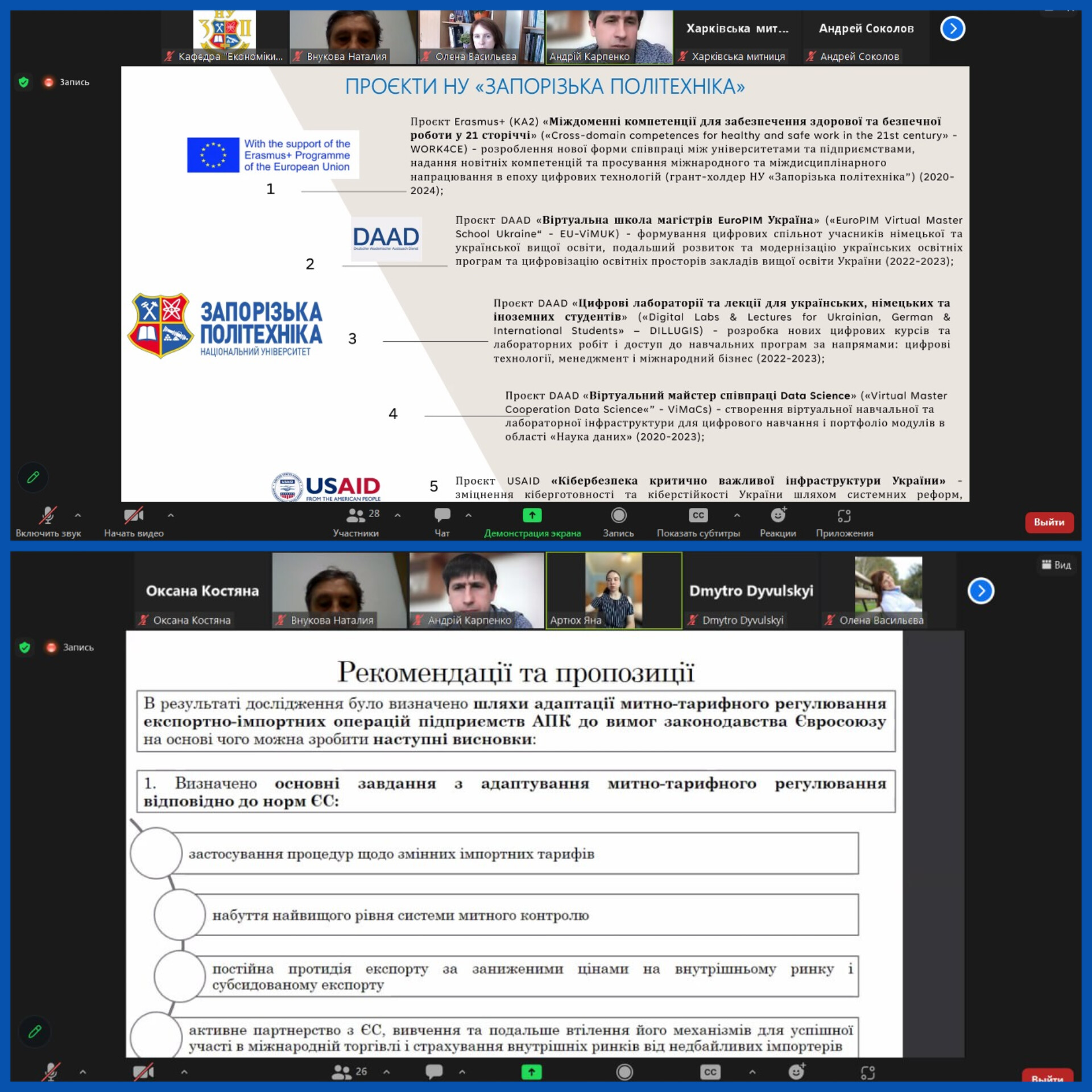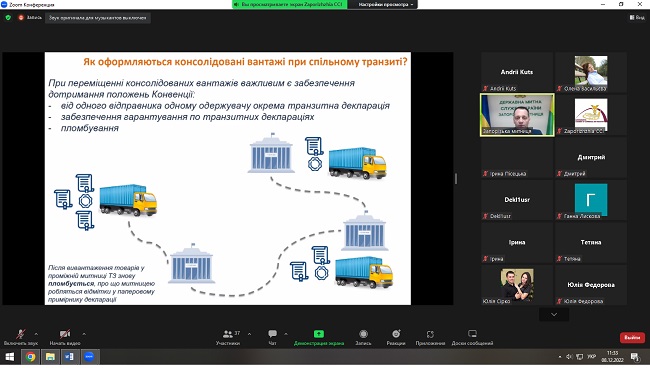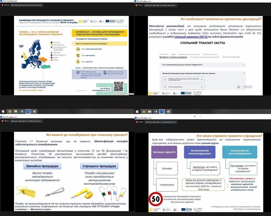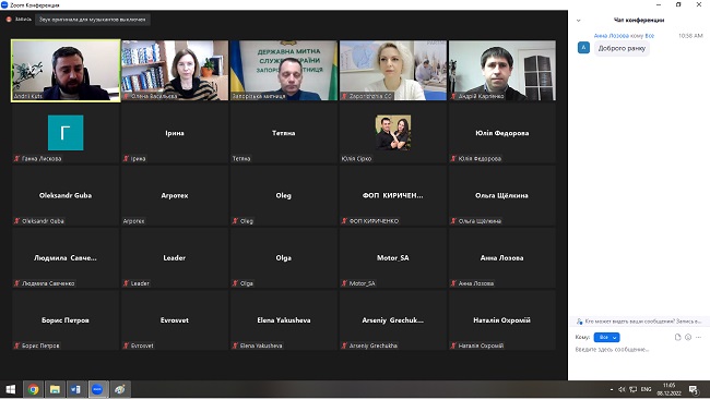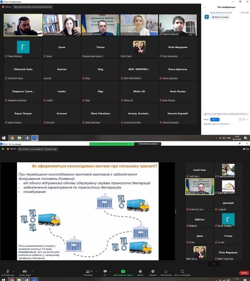 Гарант освітньої програми "Митна справа" професор кафедри Андрій Карпенко та декан факультету Олена Васильєва 8 грудня 2022 року взяли участь в онлайн-вебінарі «Практичні питання застосування національної електронної транзитної системи та міжнародного застосування NCTS» за участі експертів Запорізької митниці ДМСУ та Запорізької ТПП