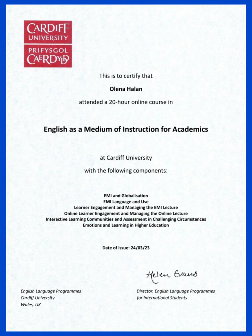 з отриманням сертифікату Кардіфського університету