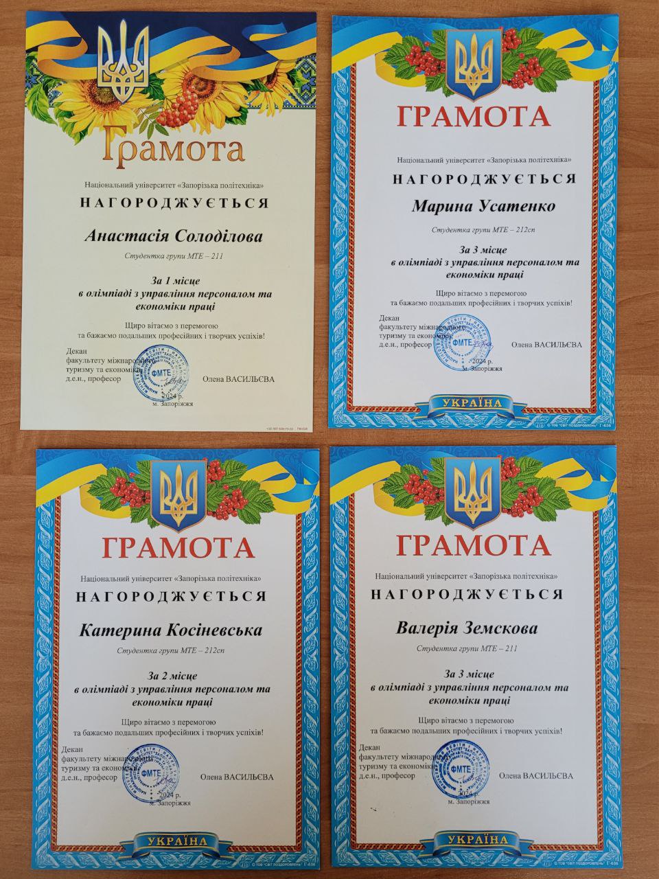 Земскову Валерію, гр. МТЕ – 211 (3 місце) та Усатенко Марину, гр. МТЕ-212сп (3 місце).