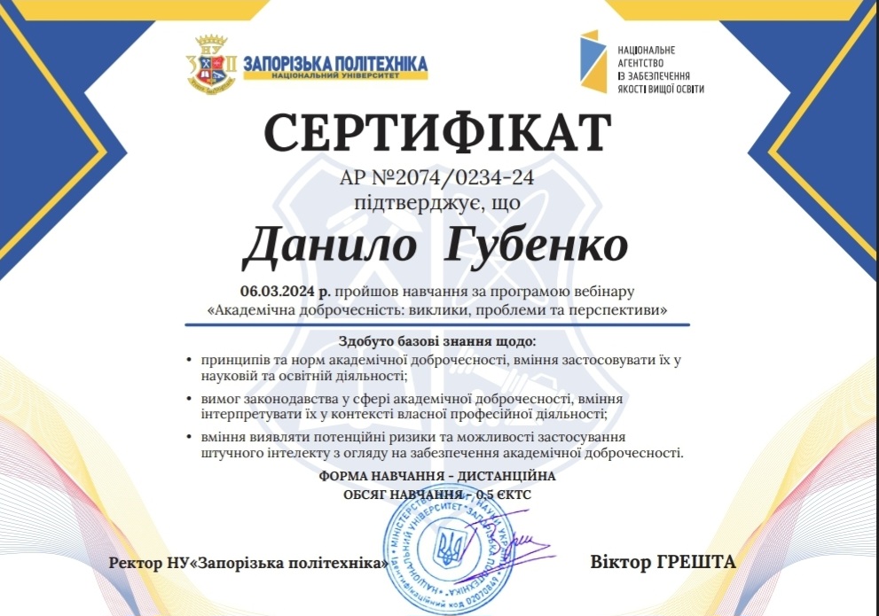 пройшли навчання за програмою вебінару «Академічна доброчесність: виклики, проблеми та перспективи»