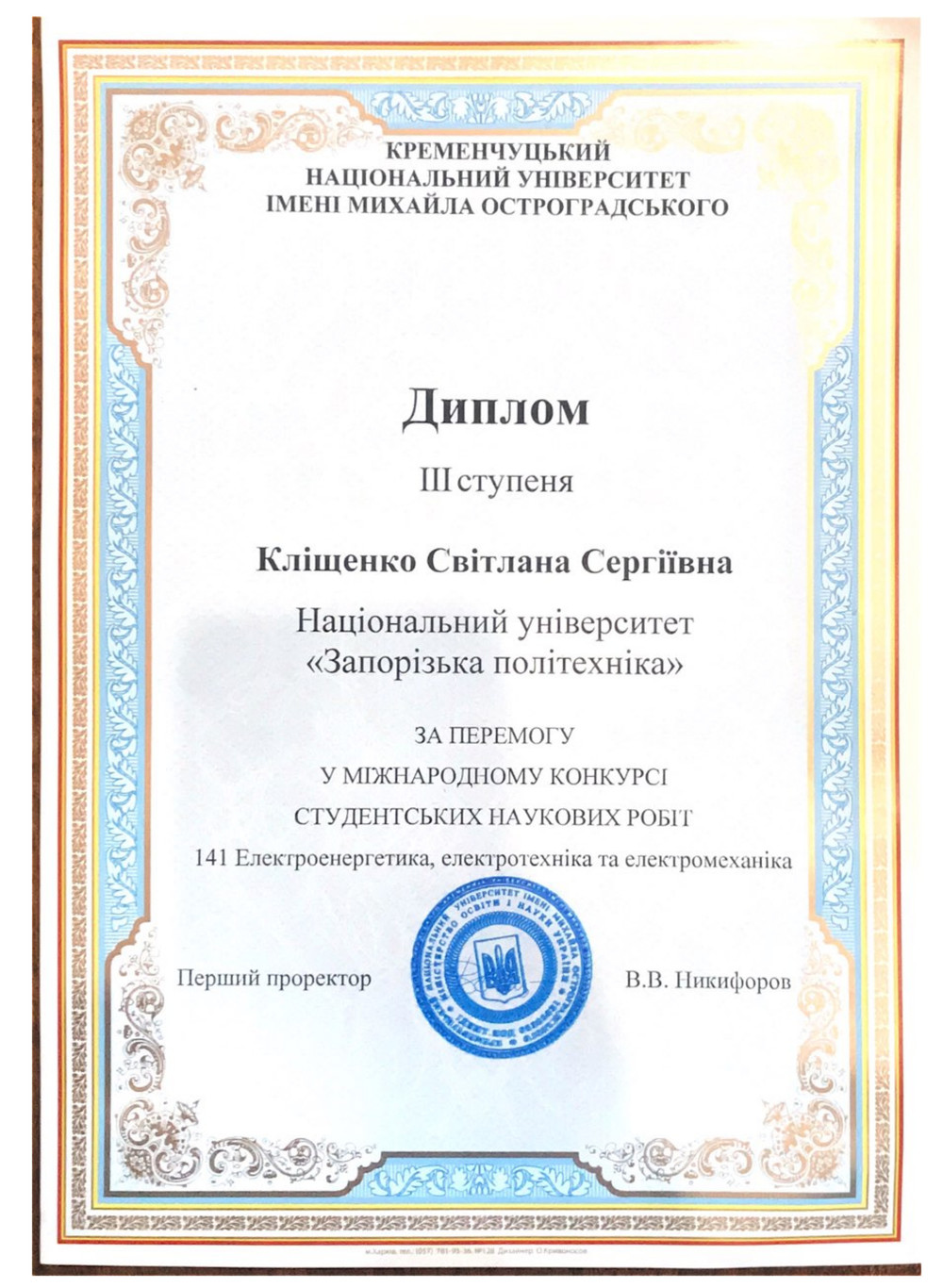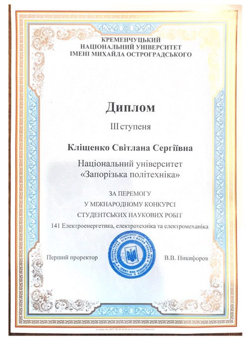 (науковий керівник - Дівчук Тетяна Євгенівна, старший викладач кафедри електричних машин)