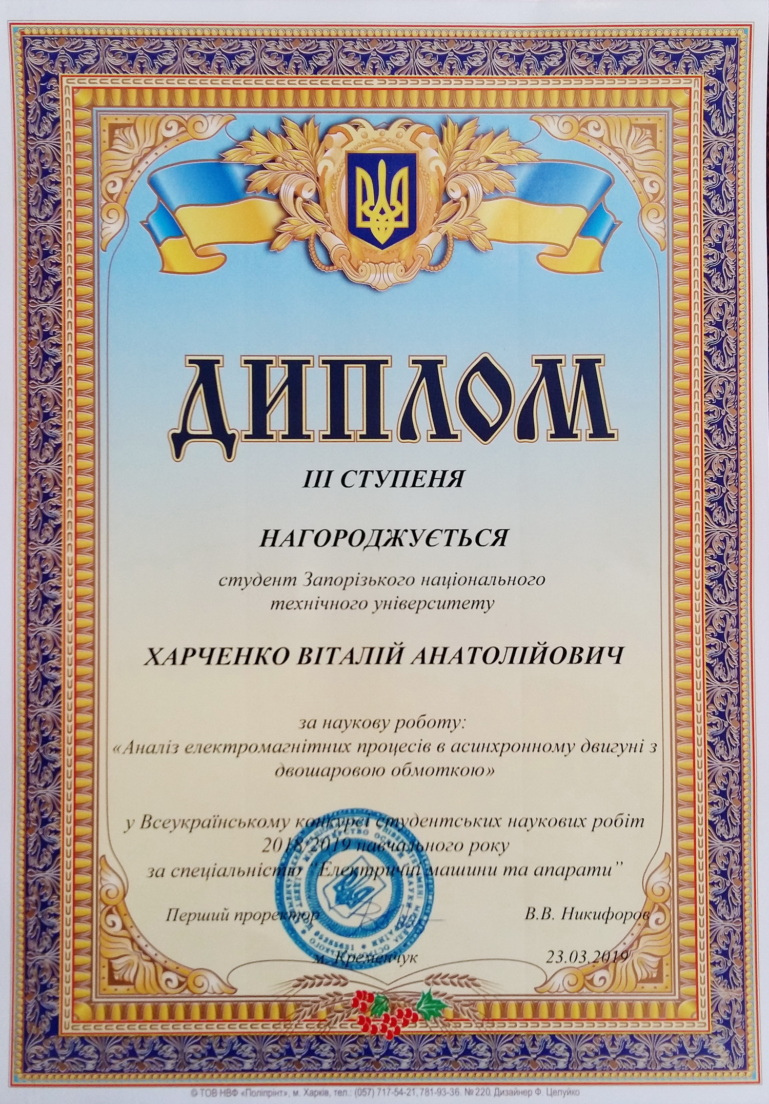 (науковий керівник - Яримбаш Сергій Тимофійович, канд.техн.наук, доцент кафедри електричних машин)