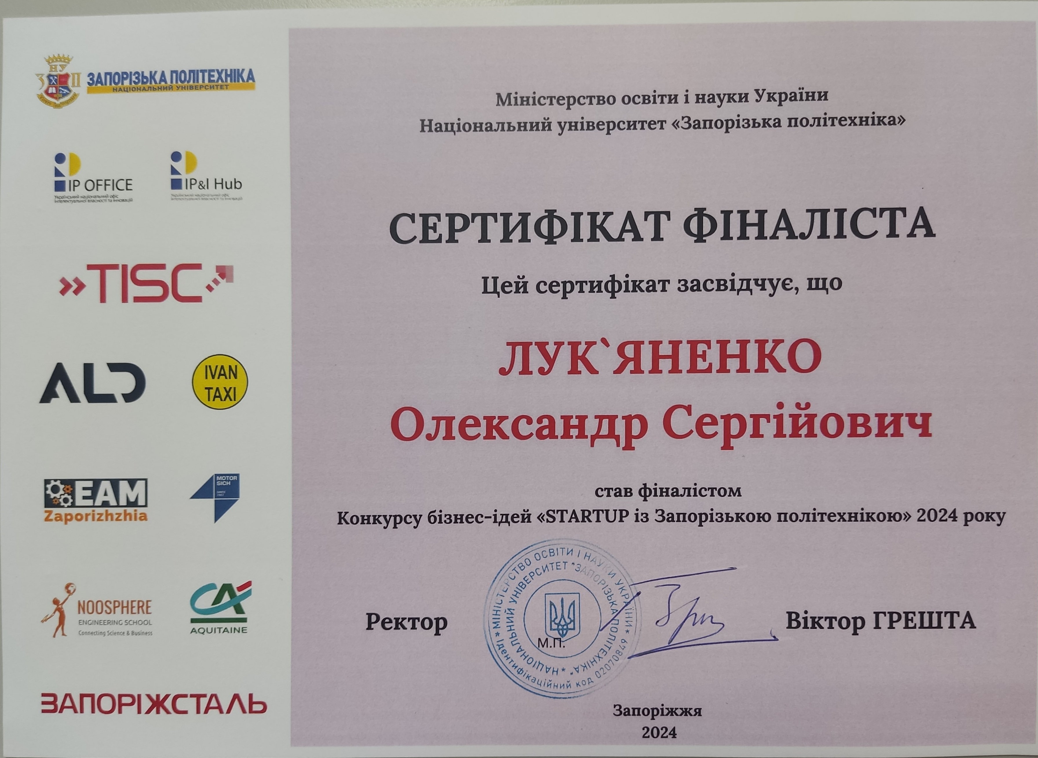 Кафедра вітає фіналістів конкурсу бізнес - ідей "STARTUP із Запорізькою політехнікою" - аспірантів Лук`яненка Олександра та Гордієнка Максима та студентку групи ІФ-213м Степаненко Тетяну. Ваші досягнення – це результат кропіткої праці, як Вас так і Ваших наставників. Стрімко і до мети! Не зупиняйтесь! Бажаємо успіху та натхнення для подальших звершень у вашій дослідніцькій кар'єрі!
