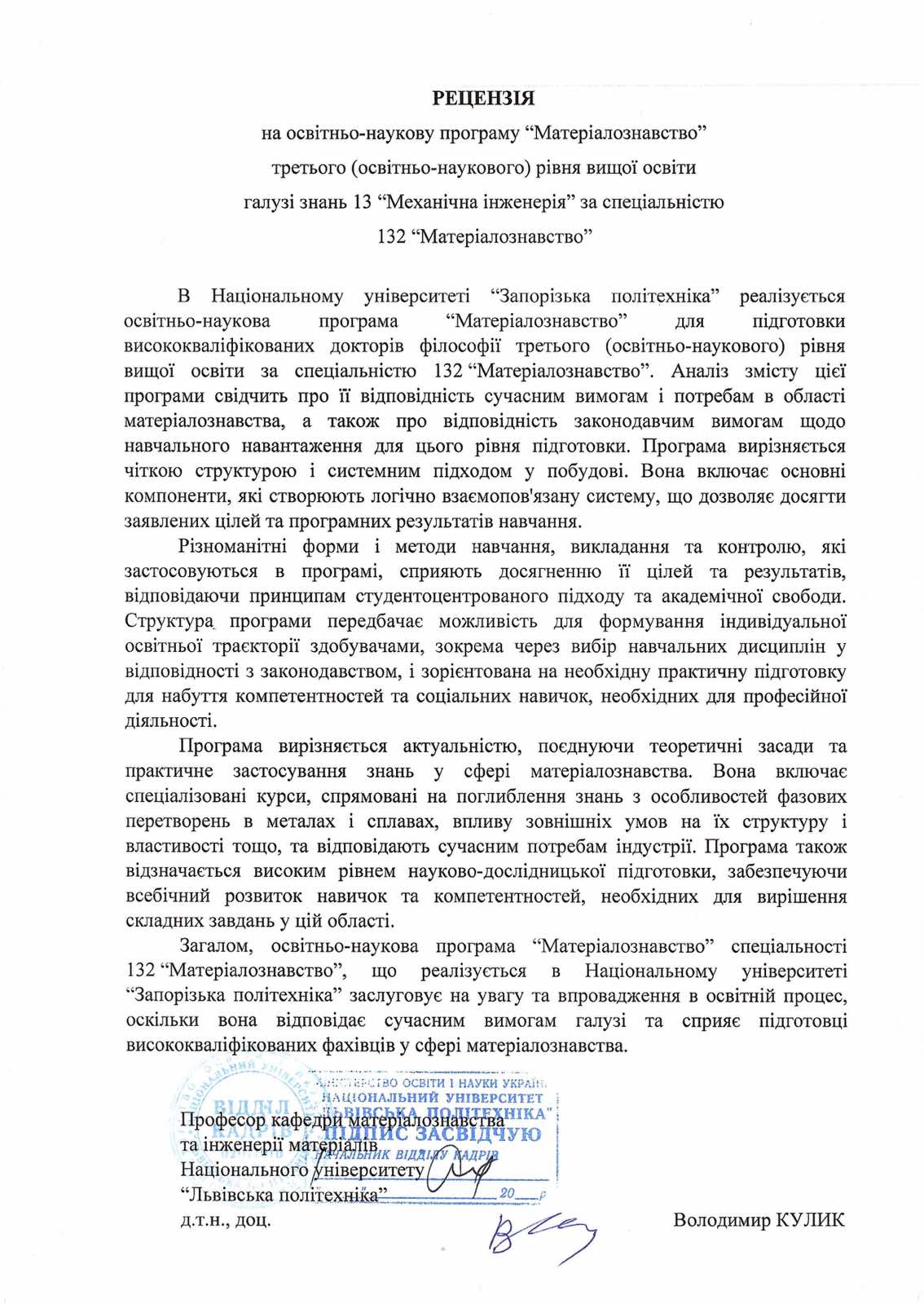 Рецензії про освітню-наукову програму "Матеріалознавство"