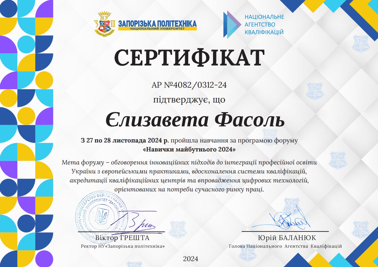 Старша викладачка Єлизавета Фасоль долучилася до престижного форуму «Навички майбутнього 2024». Протягом 27-28 листопада наша колега опановувала інноваційні освітні практики та секрети інтеграції української професійної освіти до європейського простору.