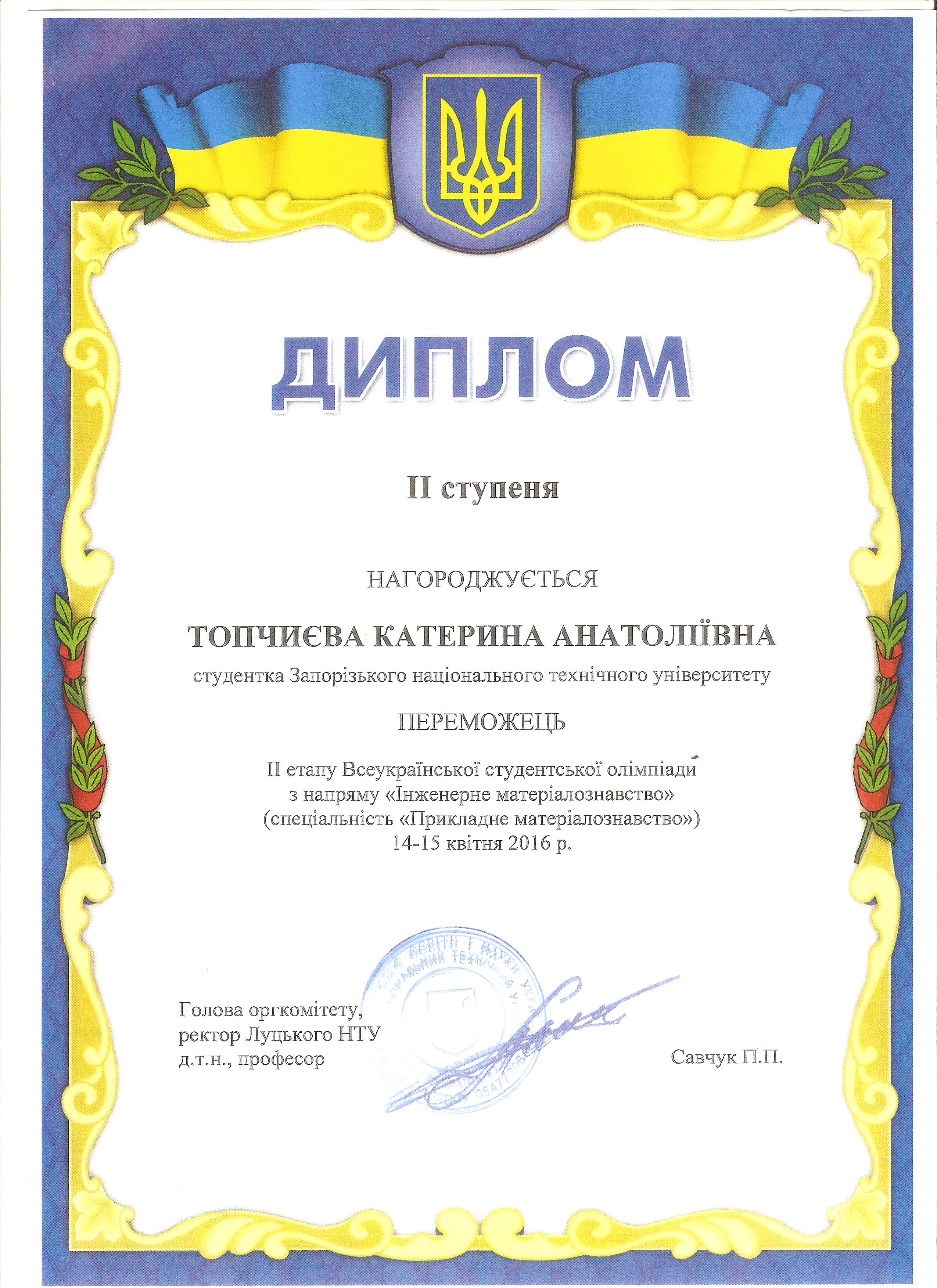 Протягом багатьох років студенти кафедри "Фізичне матеріалознавство" стають призерами всеукраїнських олімпіад та наукових конкурсів. Нижче можна ознайомитись із досягненнями призерів.