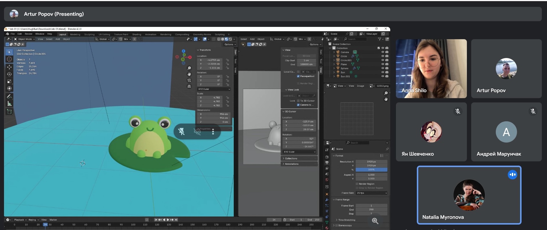 Студенти кафедри Кобець Микита, Нагурний Владислав, Федорова Софія та Шевченко Тарас прослухали курс «Об'єктно-орієнтоване кодування» англійською мовою, виконали програмний проєкт із використанням мови програмування Python на обрану тему під керівництвом німецького професора Prof. Dr.−Ing. Manfred Beham.