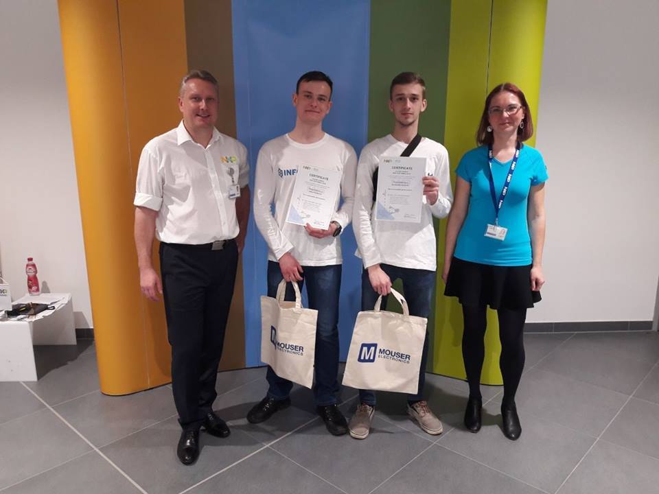 21 березня 2019 року в м. Острава, Чеська республіка, проходив конкурс NXP Cup Challenge EMEA. Головною задачею була побудова безпілотної моделі гоночної машинки, що здатна максимально швидко пройти трек із білого полотна, розпізнати фінішну лінію та зони обмеженої швидкості, виходячи із показів лінійної камери. Студенти кафедри ІТЕЗ Антон Калиниченко та Денис Романюк розробили алгоритм розпізнавання треку та ключових знаків, представлених на ньому, на базі платформу FRDM-KL25Z. Отриманий студентами досвід в розробці роботизованих систем і мехатроніці надав можливіст покращити їх навички у даній сфері, а участь у конкурсах подібного рівня мотивує до нових звершень.