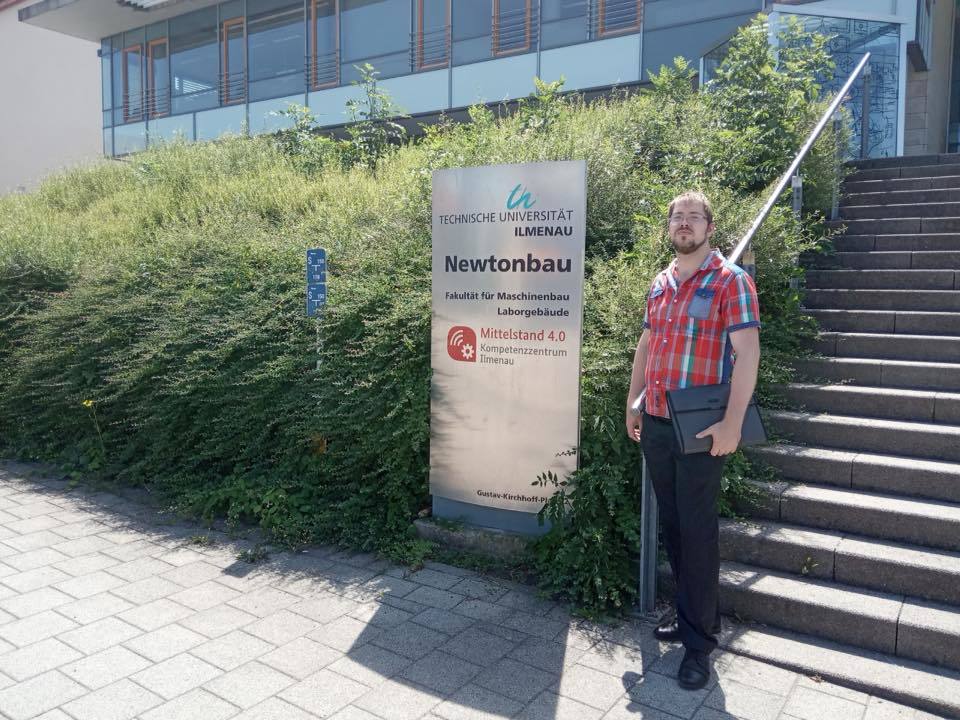 Участь у академічній мобільності студентів та докторів філософії є важливою складової для їх успішності в навчанні. Така можливість є і у студентів нашого університету. Цього року аспірант першого курсу спеціальності 172 «Телекомунікації та радіотехніка» Шаптала Стас прийняв участь у програмі Erasmus+. Він один семестр проходив навчання в Технічному університеті Ільменау. За цей час Стас розробив концепцію та прототип веб-симуляції "Автономного мініатюрного транспортера" для Віддаленої Лабораторії "GOLDi". Він повернувся з новими знаннями та ідеями та зараз працює над новим проектом у нашому університеті.