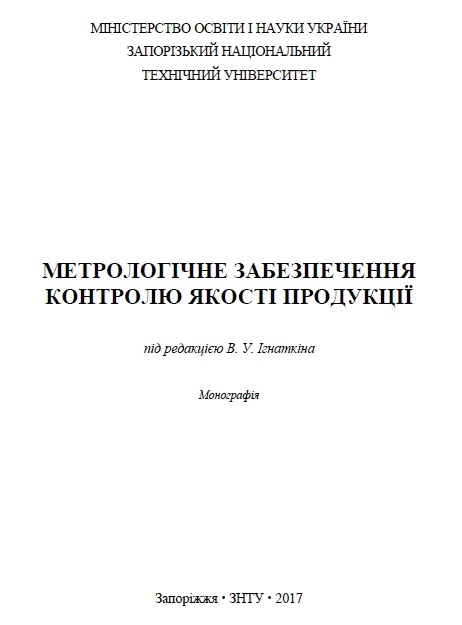 Метрологічне забезпечення контролю якості продукції : монографія / [Ігнаткін В. У., Туз Ю. М., Левківський К. М., Томашевський О. В.]. за ред. Ігнаткін В. У. – Запоріжжя : Запорізький національний технічний університет, – 2017. – 202 с.