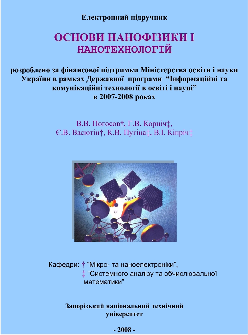 Погосов В.В., Корніч Г.В., Васютін Є.В., Пугіна К. В., Кіпріч В.І. Основи  нанофізики і нанотехнологій / Електронний підручник – Запоріжжя: ЗНТУ 2008,  630с.