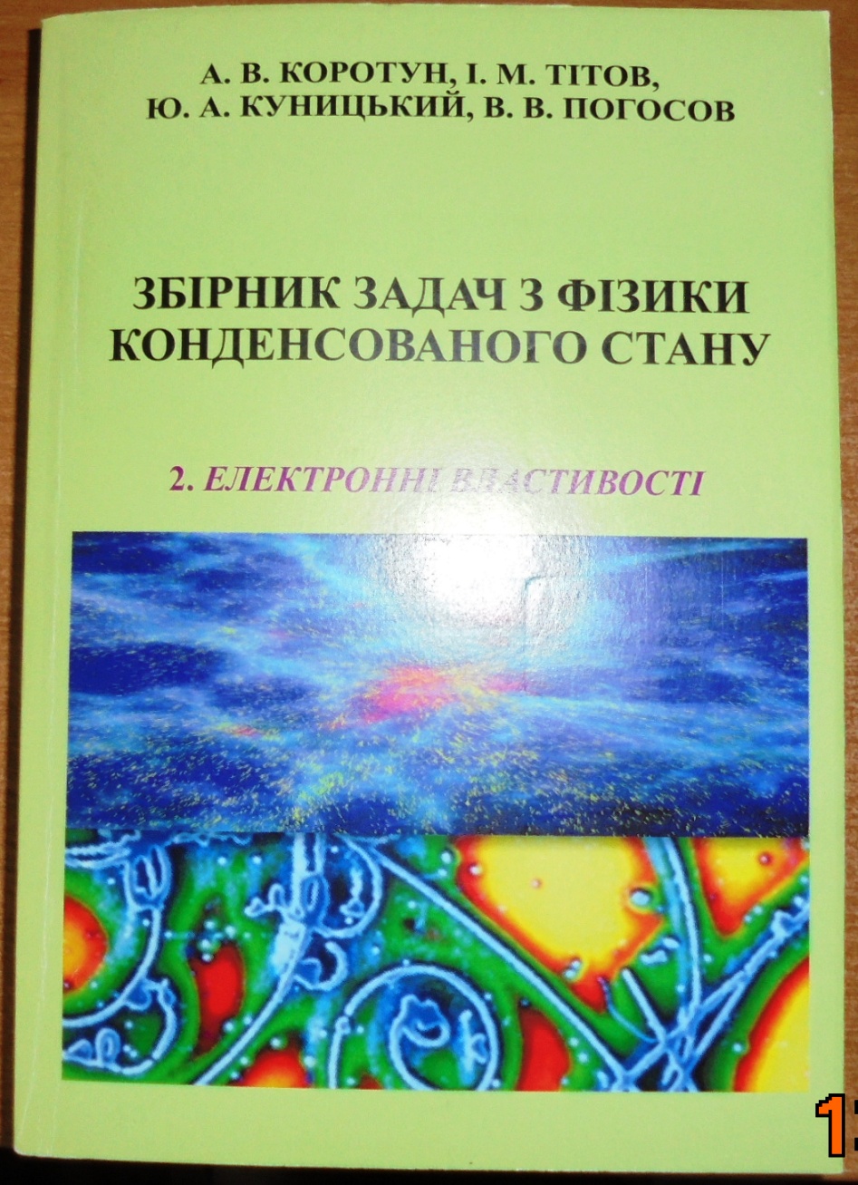 Коротун А.В., Тітов І.М., Куницький Ю.А., Погосов В.В. Збірник задач з фізики конденсованого стану, Навчальний посібник (з грифом МОНУ), Запоріжжя: ЗНТУ, 2011. – Т 2 – 470 с.