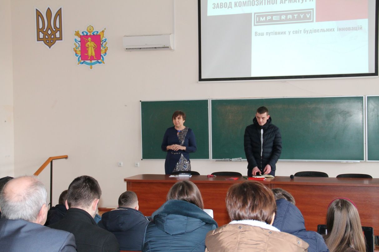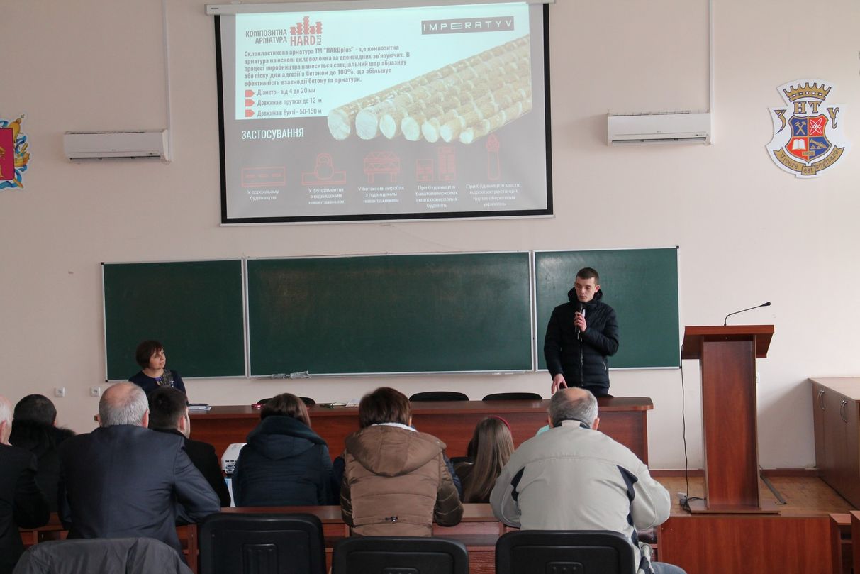 13 лютого відбулася зустріч студенів та викладачів кафедри КМХТ НУ "Запорізька політехніка" з представниками заводу композиційних матеріалів "Імператив-Україна"(м. Харків), який займається виробництвом і торгівлею у сфері композитних матеріалів на основі скловолокна. На даний час підприємство є найбільшим виробником композитної арматури та композитної кладочної сітки в Україні. На зустрічі були представлені нові технології виробництва склопластикової арматури ТМ "HARDplus", яка є композитною арматурою на основі скловолокна з напиленням піску зі 100% адгезію з бетоном і може бути застосована при високих навантаженнях. За повідомленнями представників заводу така арматура на даний час є самим надійним видом композитної арматури в світі. Після зустрічі усі охочі мали можливість поспілкуватися зі співробітниками заводу композиційних матеріалів "Імператив-Україна" й поставити свої питання.