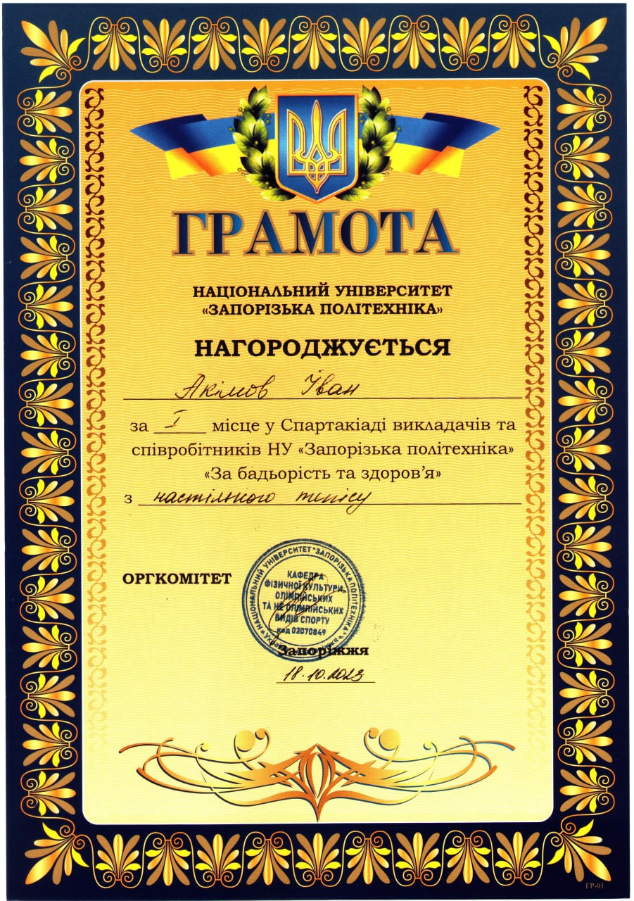 Перше місце з настільного тенісу посів доцент нашої кафедри Іван АКІМОВ. Вітаємо з перемогою!