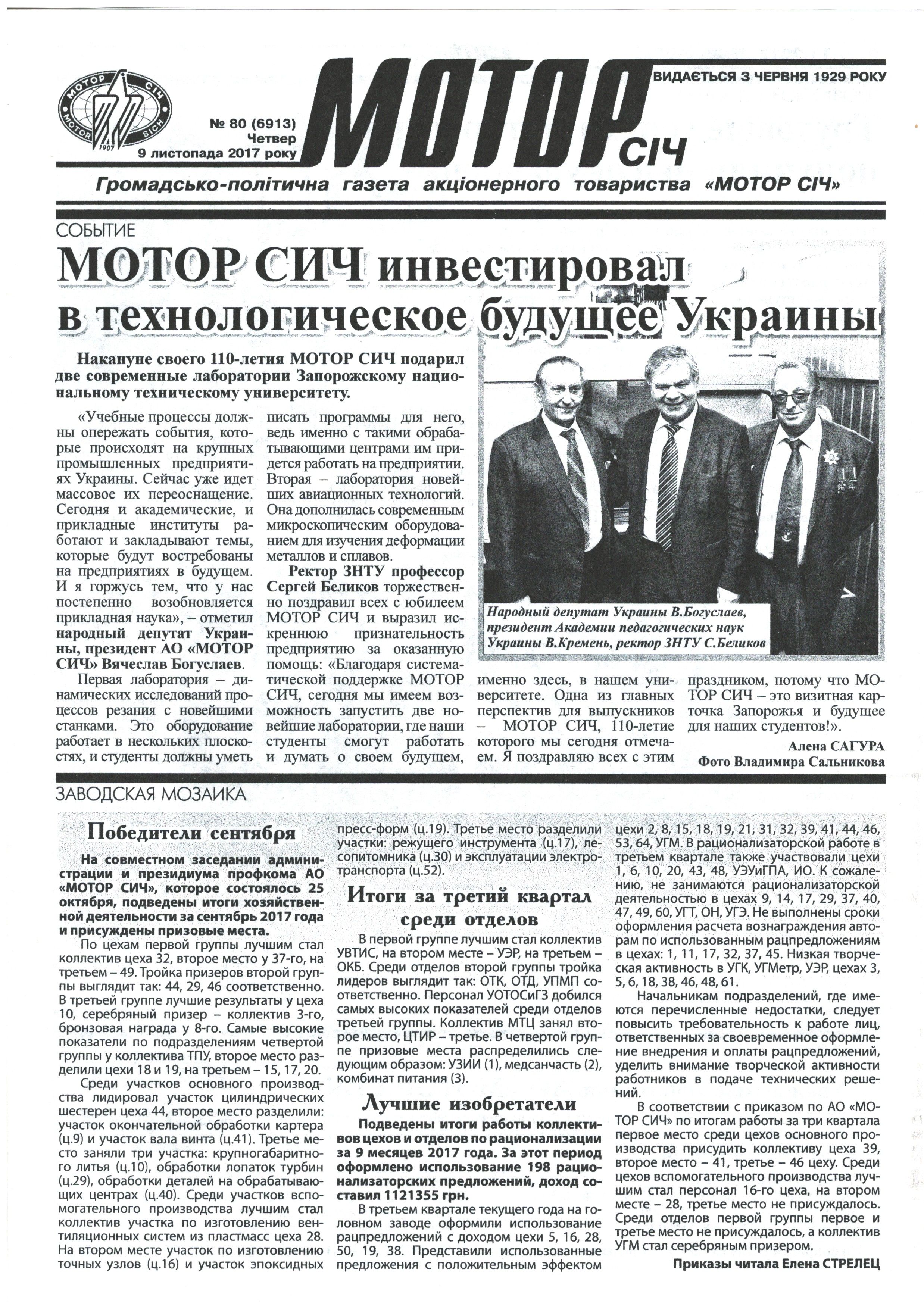 Публічне акціонерне товариство «Мотор Січ», м. Запоріжжя