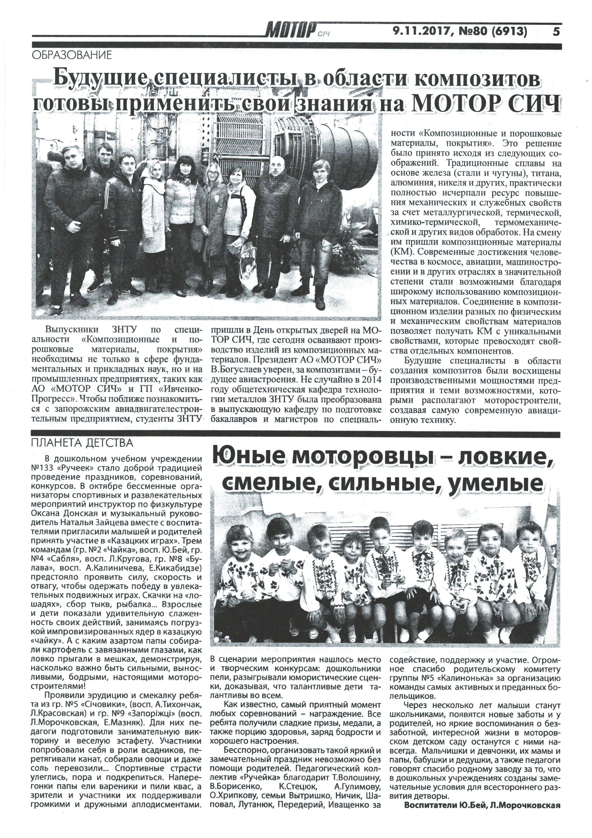 Cтуденти й викладачі нашої кафедри відвідали «День відкритих дверей» на АТ «МОТОР СІЧ», де сьогодні освоюють виробництво виробів з композиційних матеріалів. Майбутні фахівці в області створення композитів ознайомилися з виробничими потужностями підприємства й тими можливостями, які мають у своєму розпорядженні моторобудівники, створюючи найсучаснішу авіаційну техніку.