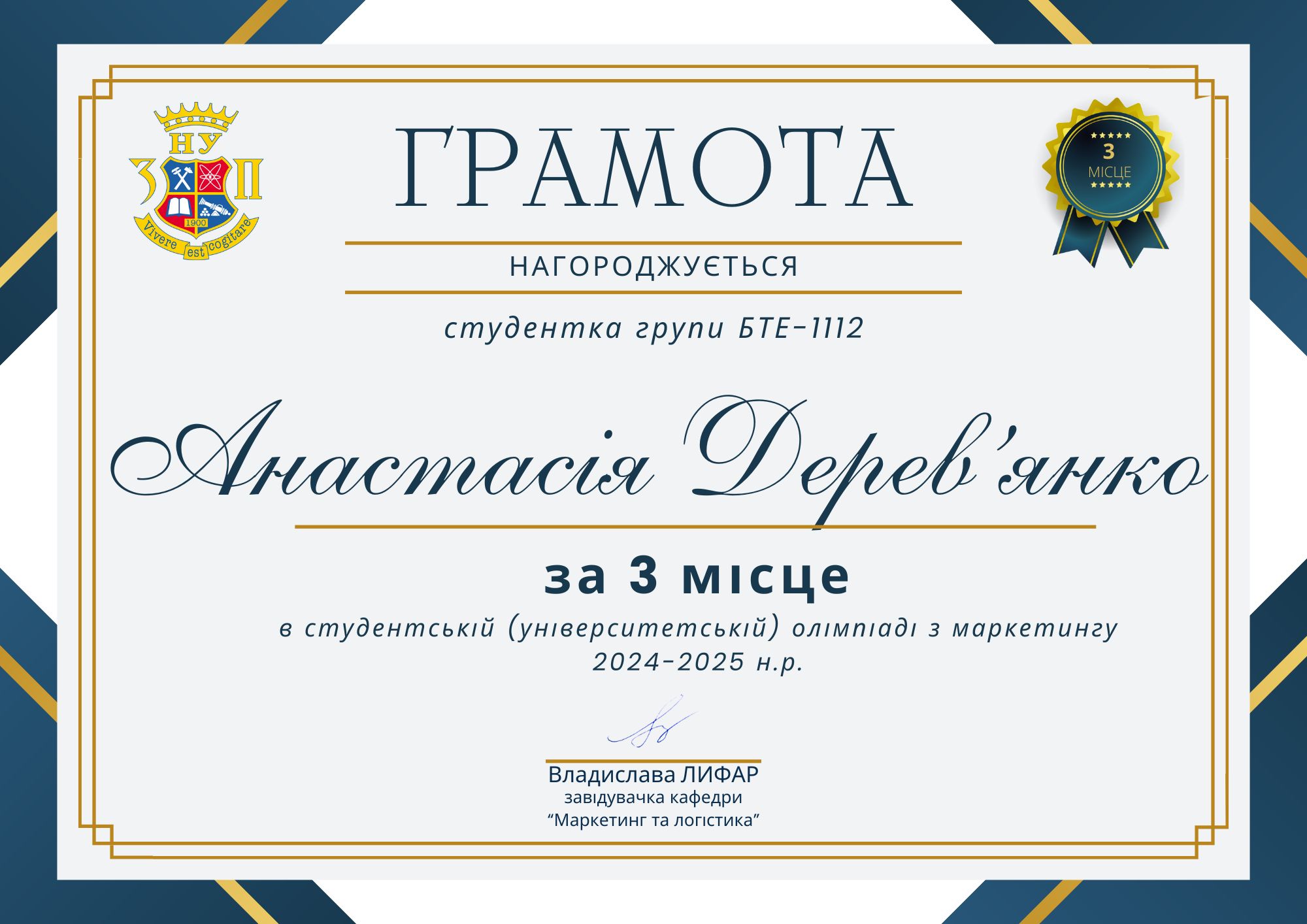 ІІІ місце: Дерев'янко Анастасія, БТЕ-1112