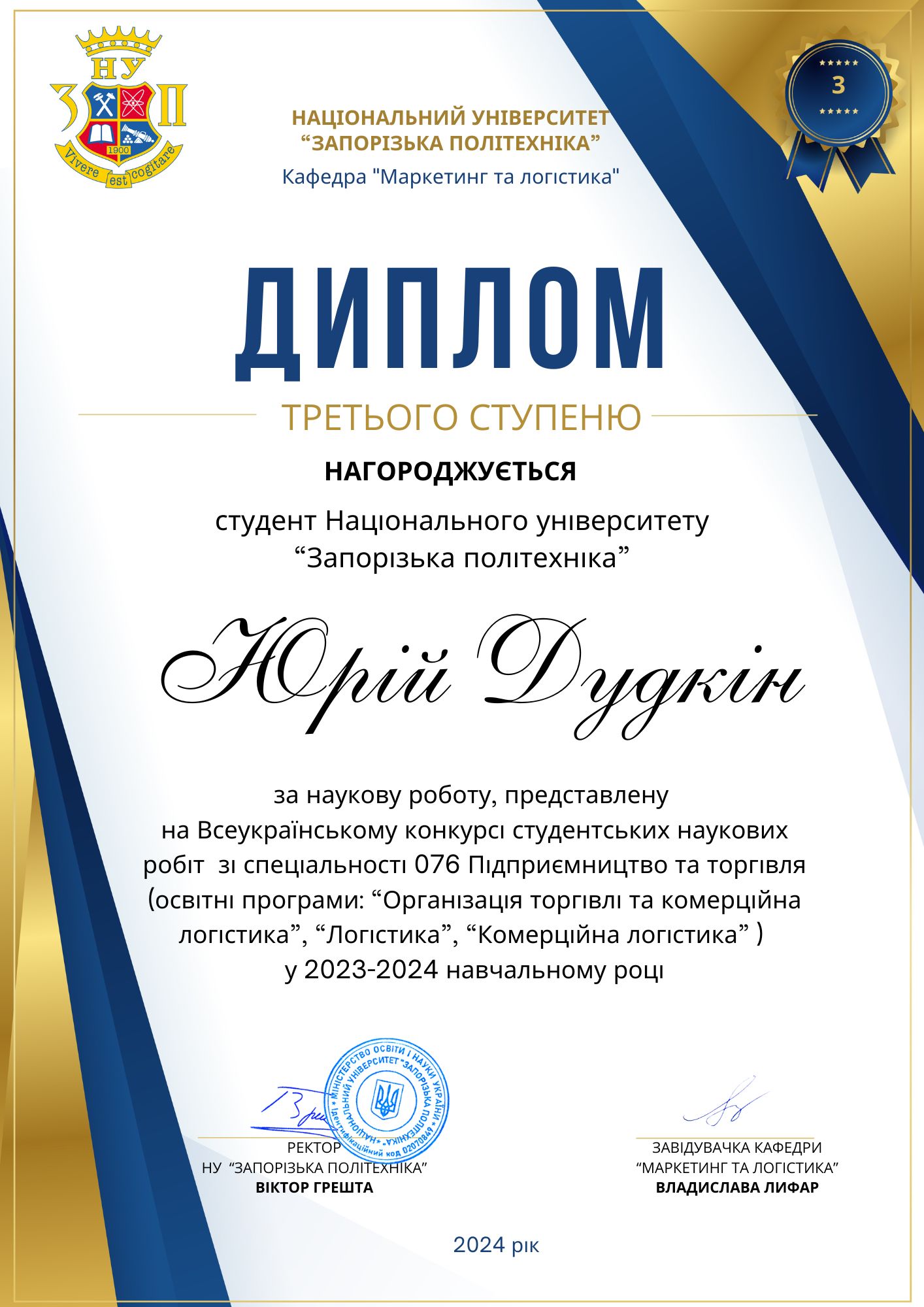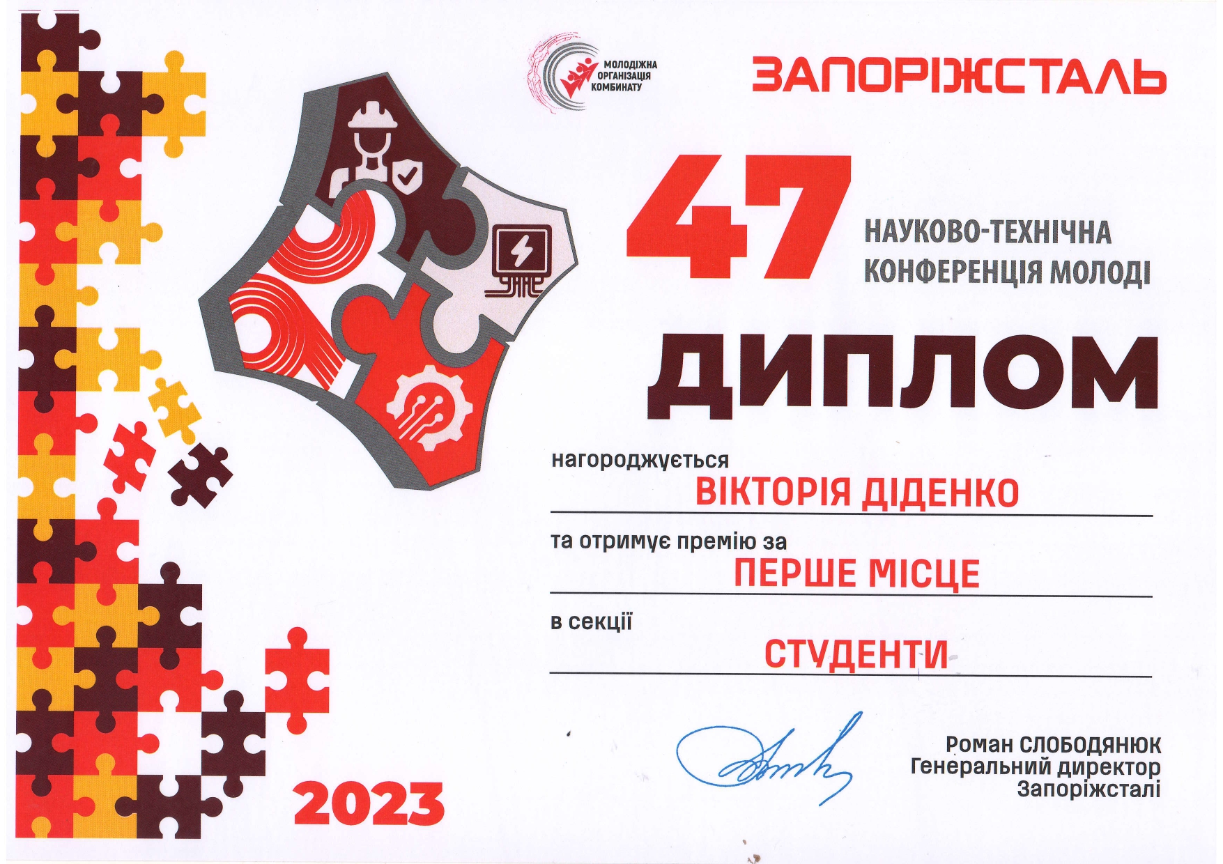 На початку грудня 2024 р. в НУ «Запорізька політехніка» відбулась конференція присвячена підсумкам наукової роботи студентів під час Вузівського етапу Всеукраїнського конкурсу студентських наукових робіт (секція «Управління та адміністрування») .
