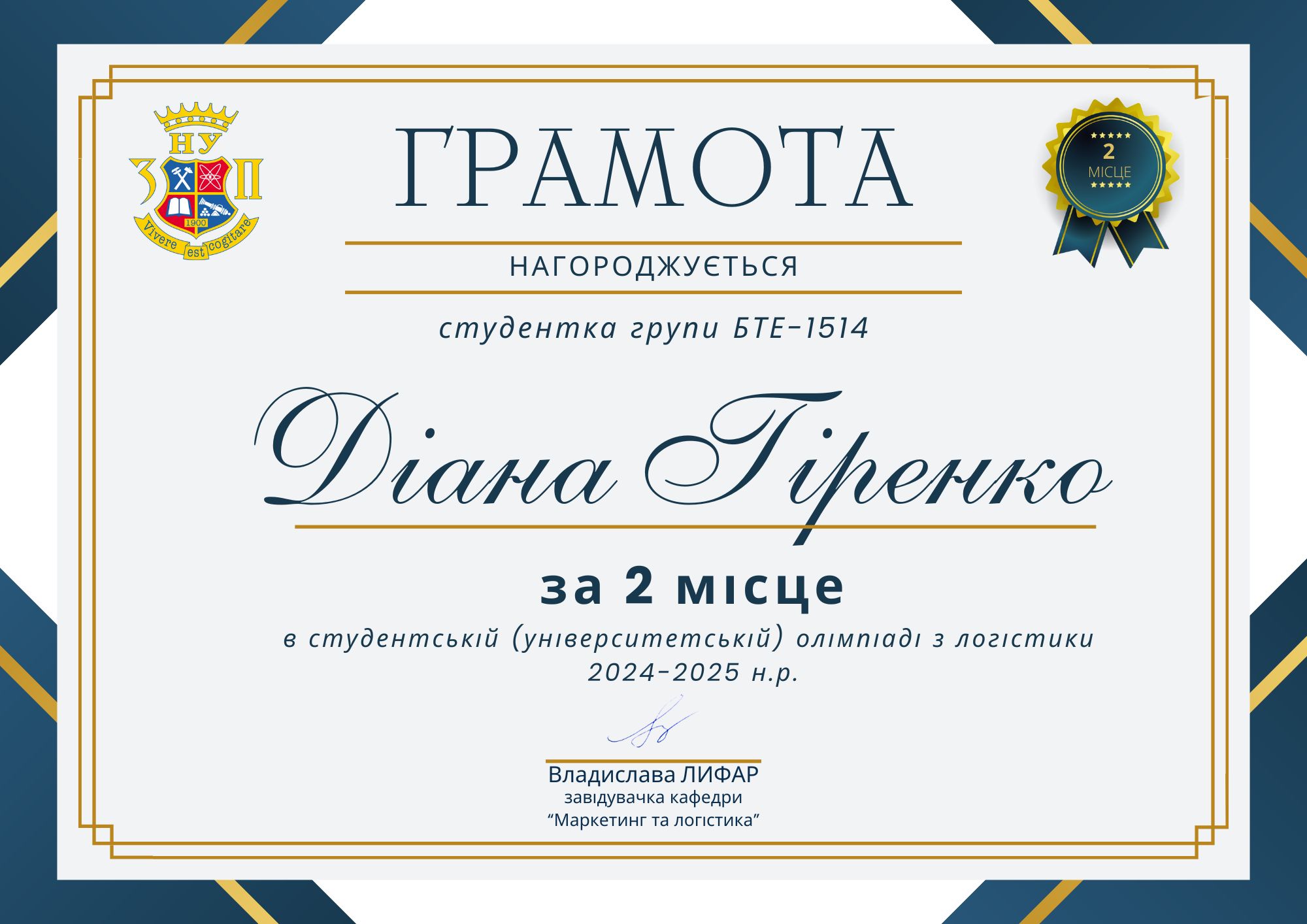 ІІ місце: Гіренко Діана, БТЕ-1514