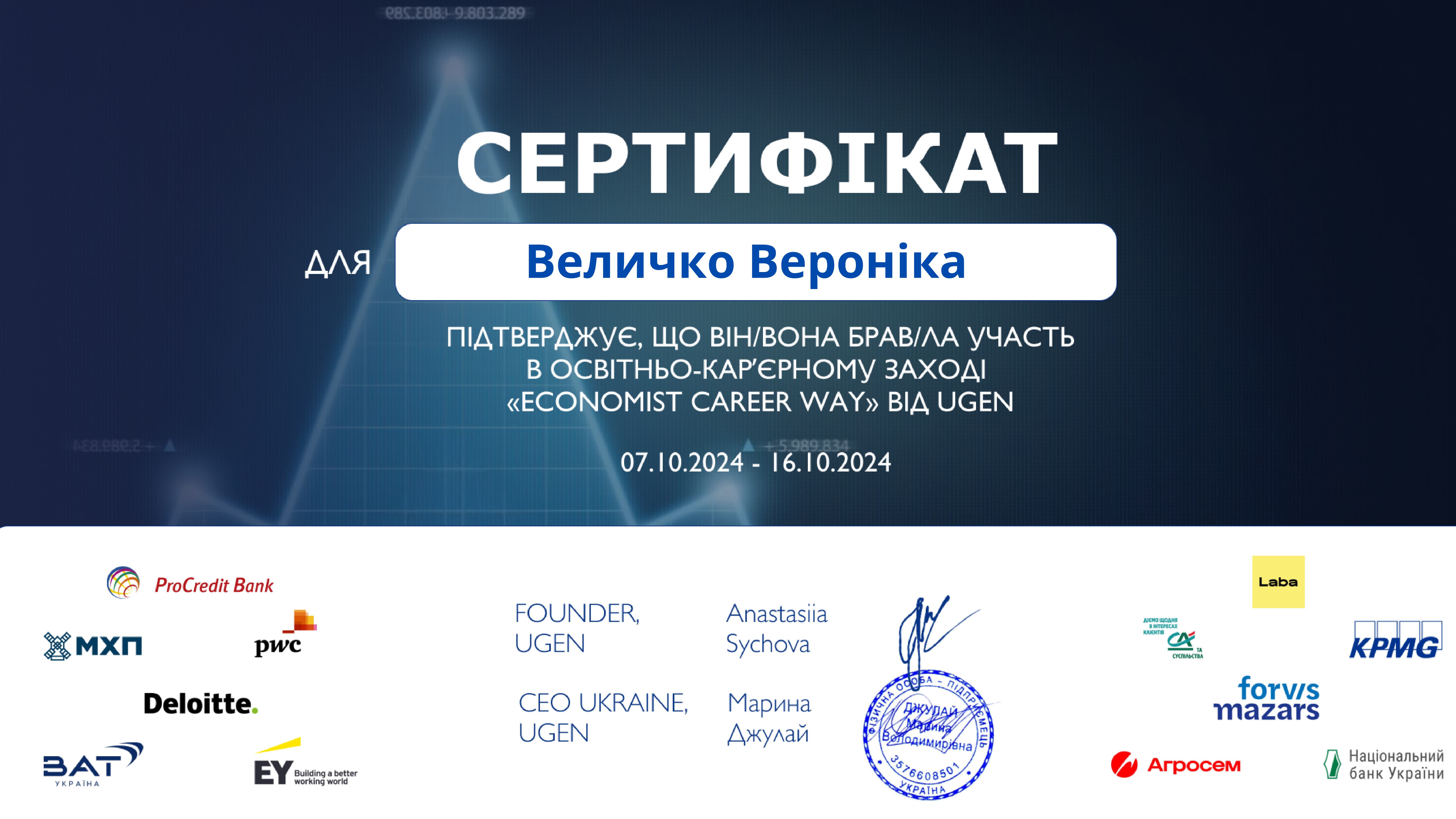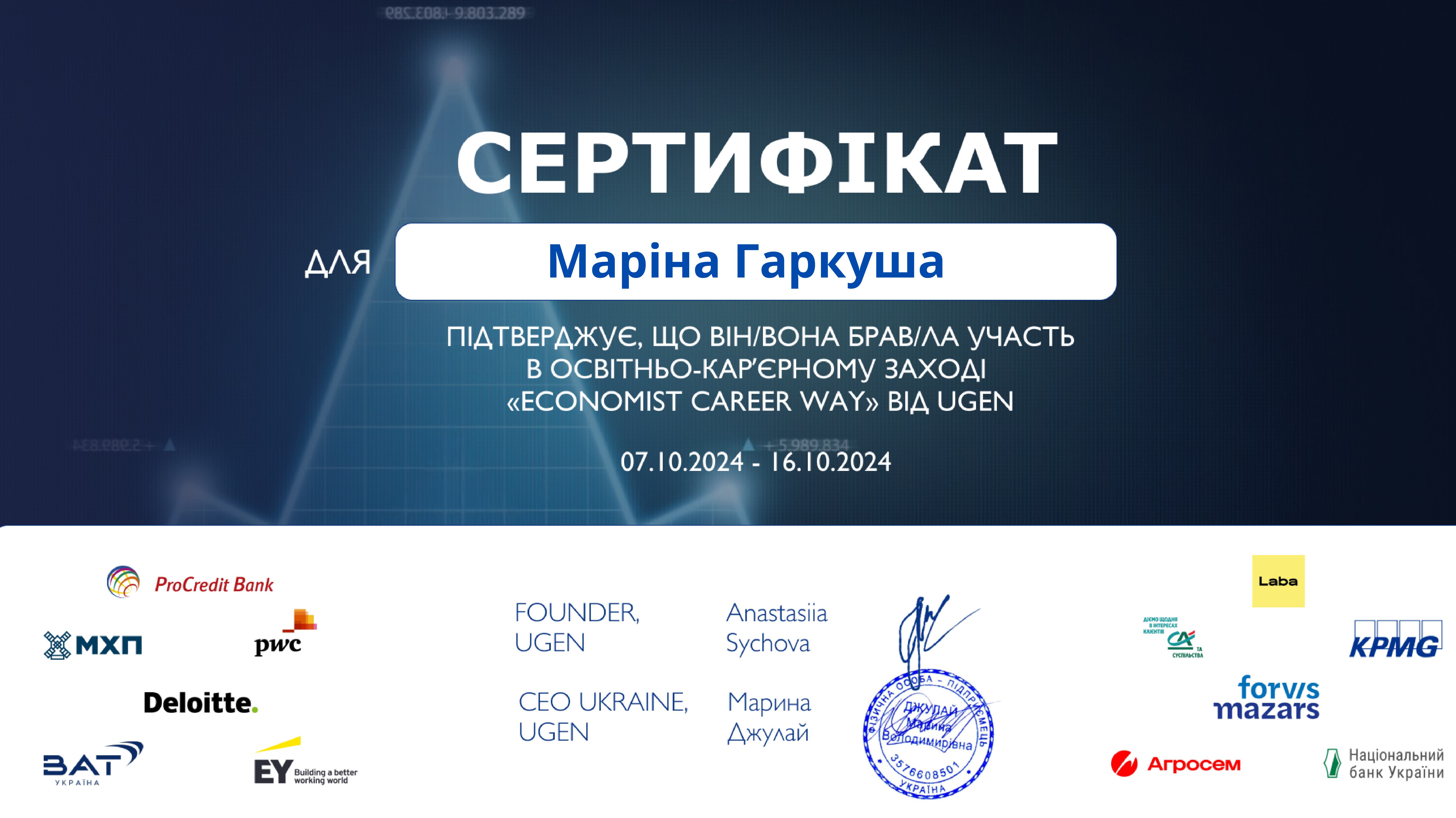 ВІТАЄМО УЧАСНИКІВ КАР'ЄРНОГО ЗАХОДУ «ECONOMIST CAREER WAY» від UGEN!