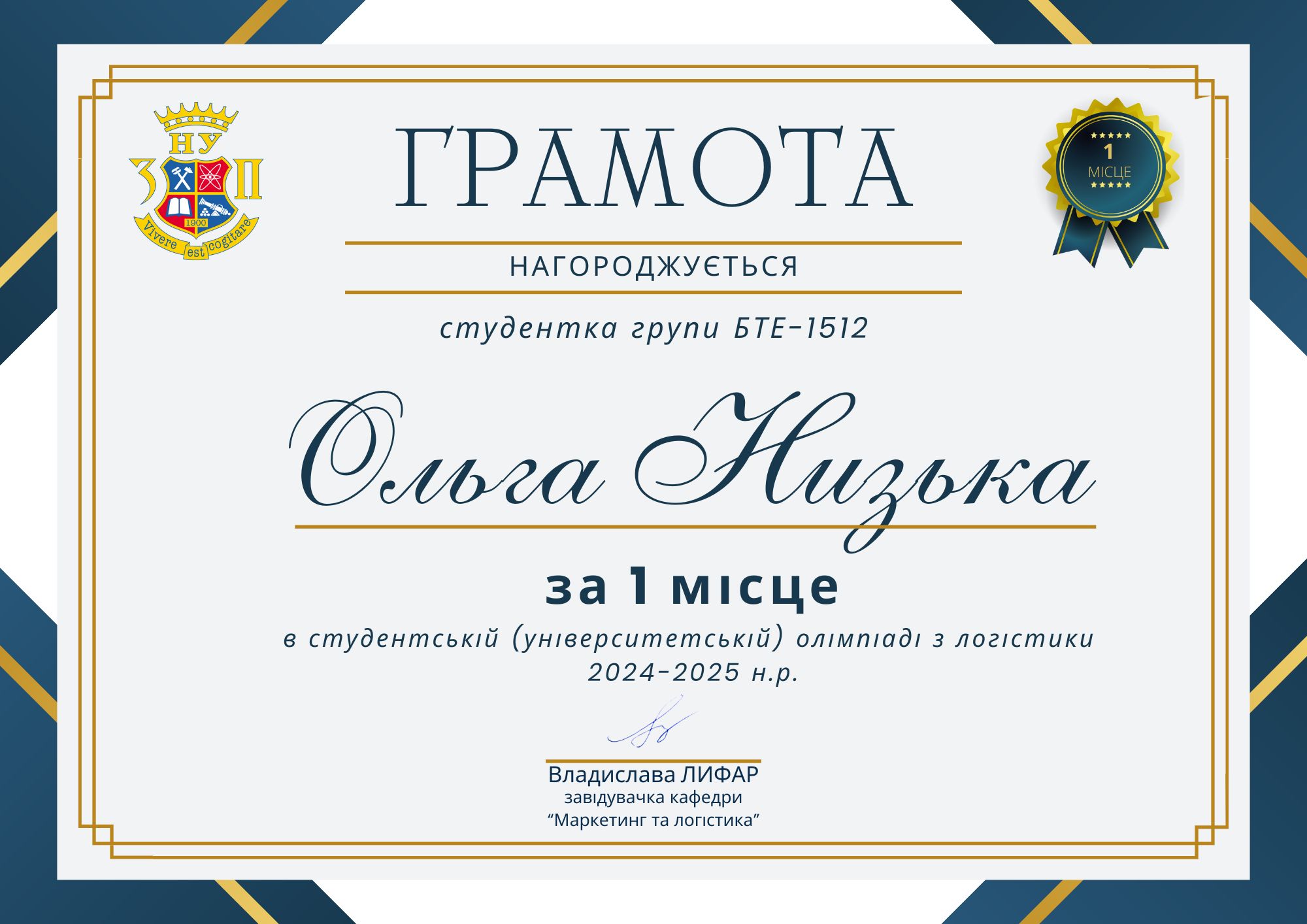 На запрошення завідувачки кафедри Лифар В.В. до олімпіади у секції «Логістика» долучились студенти спеціальності «Менеджмент», групи БТЕ-0811. Найкращі результати продемонстрували Тараско Анжеліка, Рупчева Поліна, Берестовенко Єгор, що свідчить про інтерес до предмету з боку студентів інших спеціальностей.
