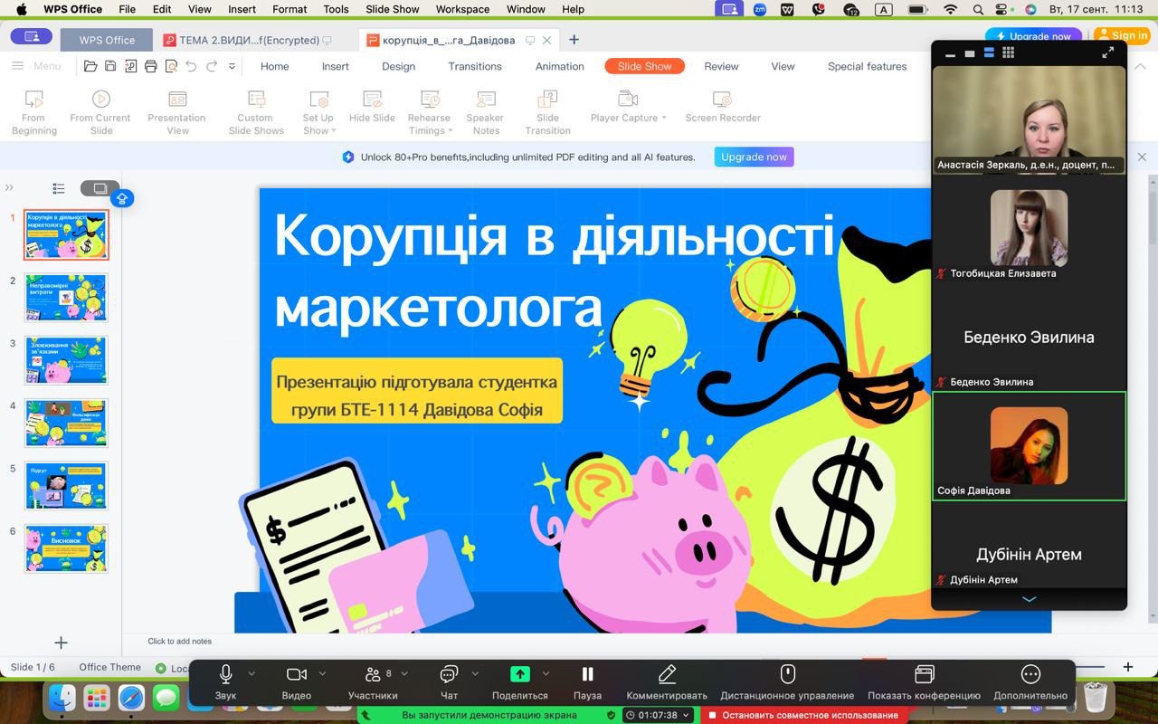 Засідання студентського наукового гуртка на тему: "Шляхи подолання ризиків недоброчесності та корупції в професії маркетолога"