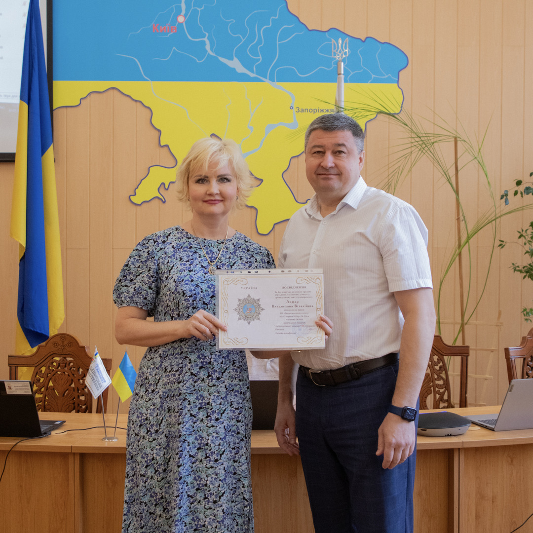За багаторічну сумлінну трудову діяльність та активну участь у громадському житті університету була нагороджена нагрудним Знаком "За бездоганну працю" ІІІ ступеню доцент кафедри "Маркетинг та логістика" Борисенко Олена Євгенівна.