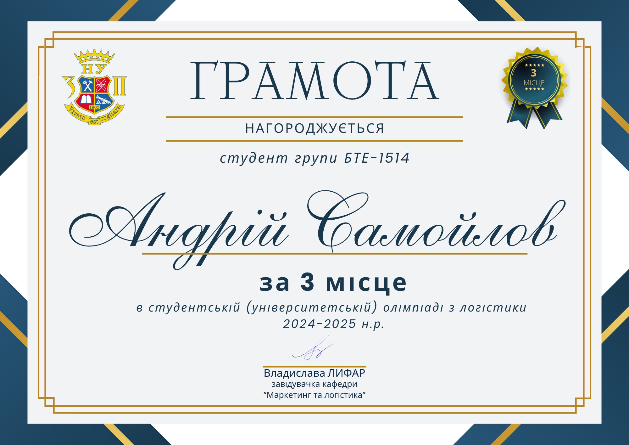 ІІІ місце: Самойлов Андрій, БТЕ-1514