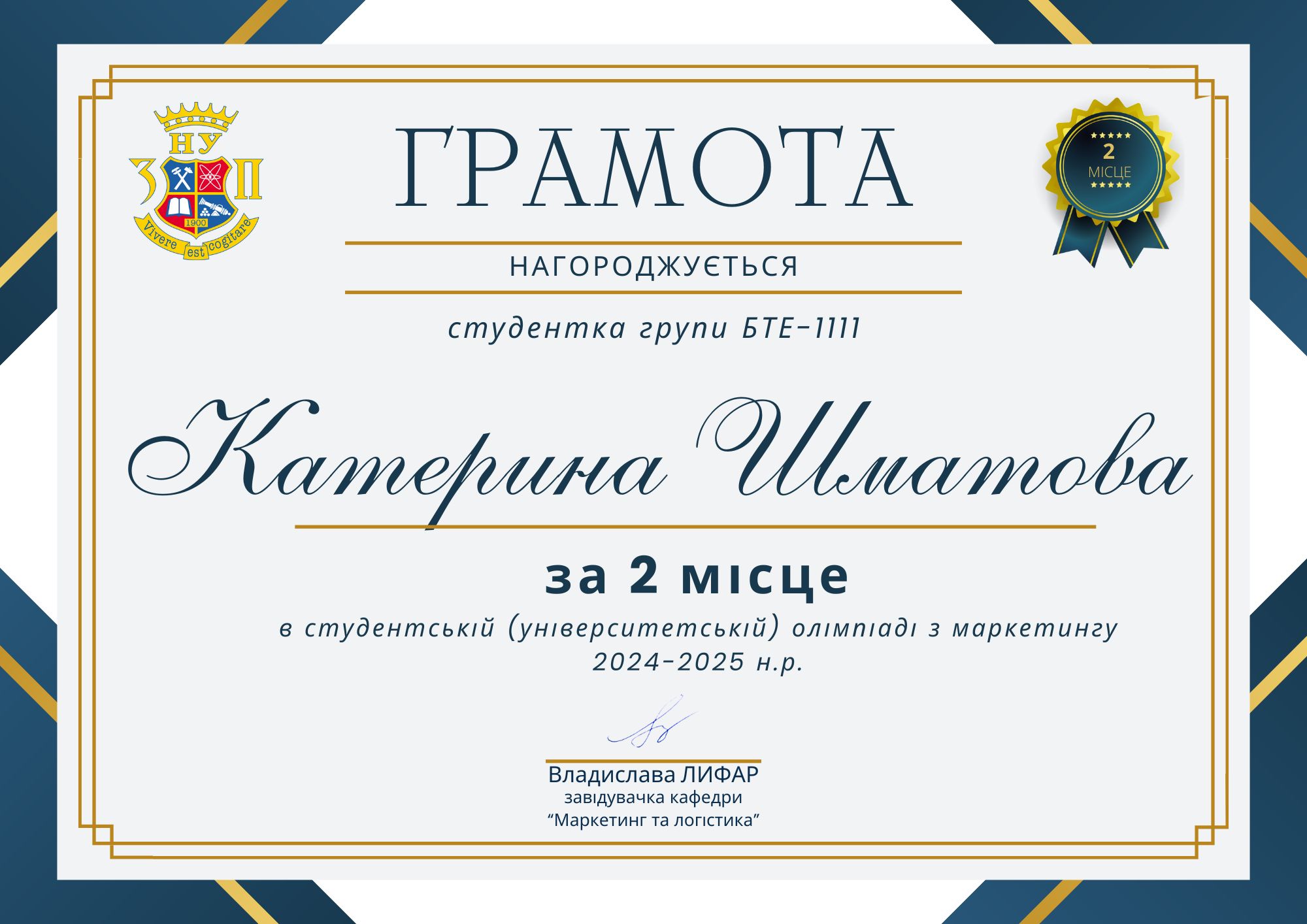 ІІ місце: Шматова Катерина, БТЕ-1111;