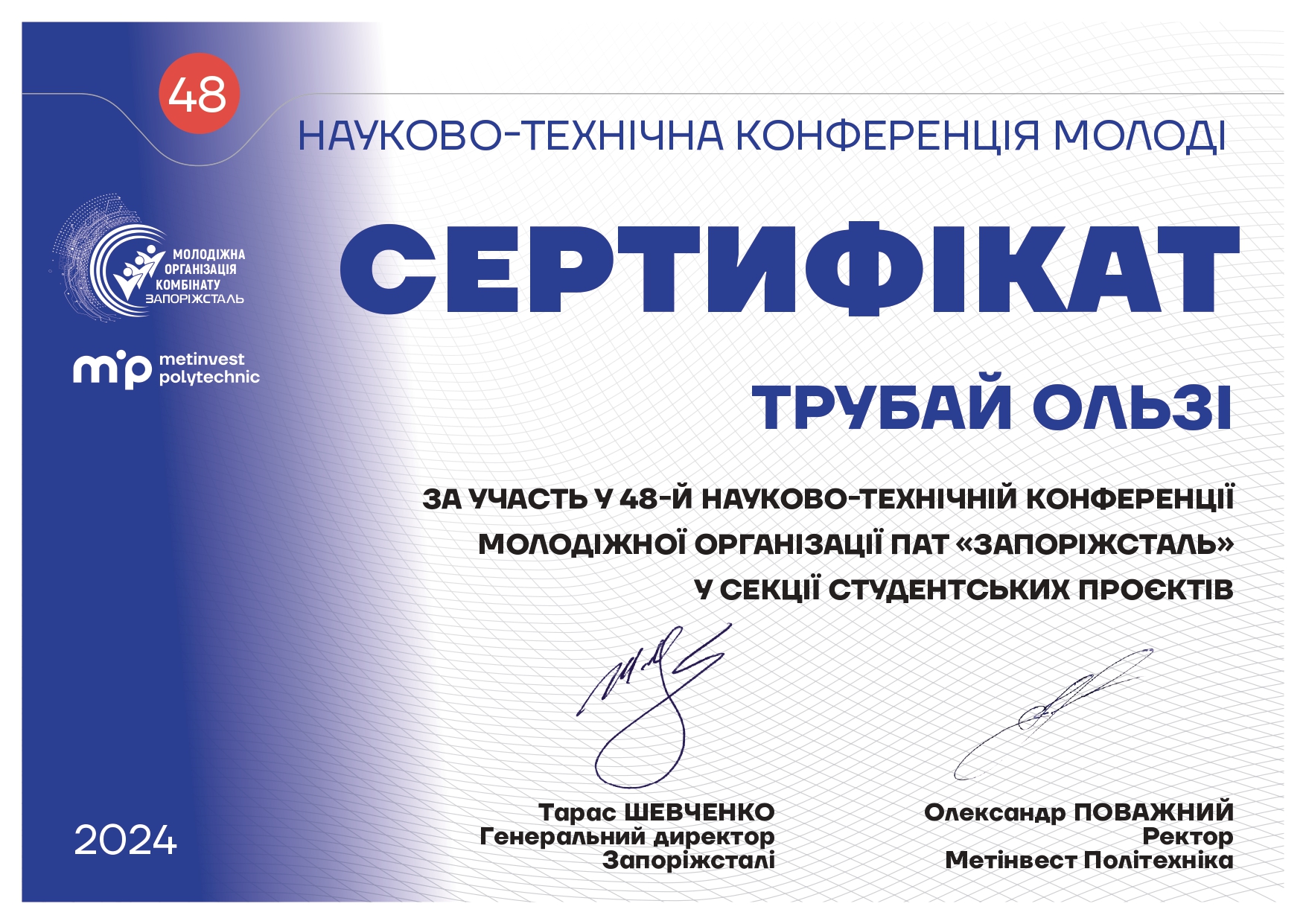 ВІТАЄМО УЧАСНИЦЬ 48-Ї НАУКОВО-ТЕХНІЧНОЇ КОНФЕРЕНЦІЇ МОЛОДІ ТРУБАЙ ОЛЬГУ (БТЕ-1114) ТА ЯРЦЕВУ НІКУ (БТЕ-1114)!