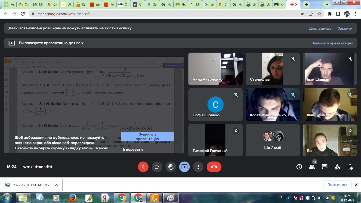 Антоненко Н.М. Про деякі застосування циклічних функцій в олімпадних задачах / Н.М. Антоненко, А.Є. Кірюніна // Тиждень науки НУ «Запорізька політехніка». Машинобудівний факультет: щорічна наук.-практ. конф., 24-28 квітня 2023 р.: тези доп. / Редкол.: В.В. Наумик (відповід. ред.). Електрон. дані. – Запоріжжя: НУ «Запорізька політехніка», 2023. – С. 175-177