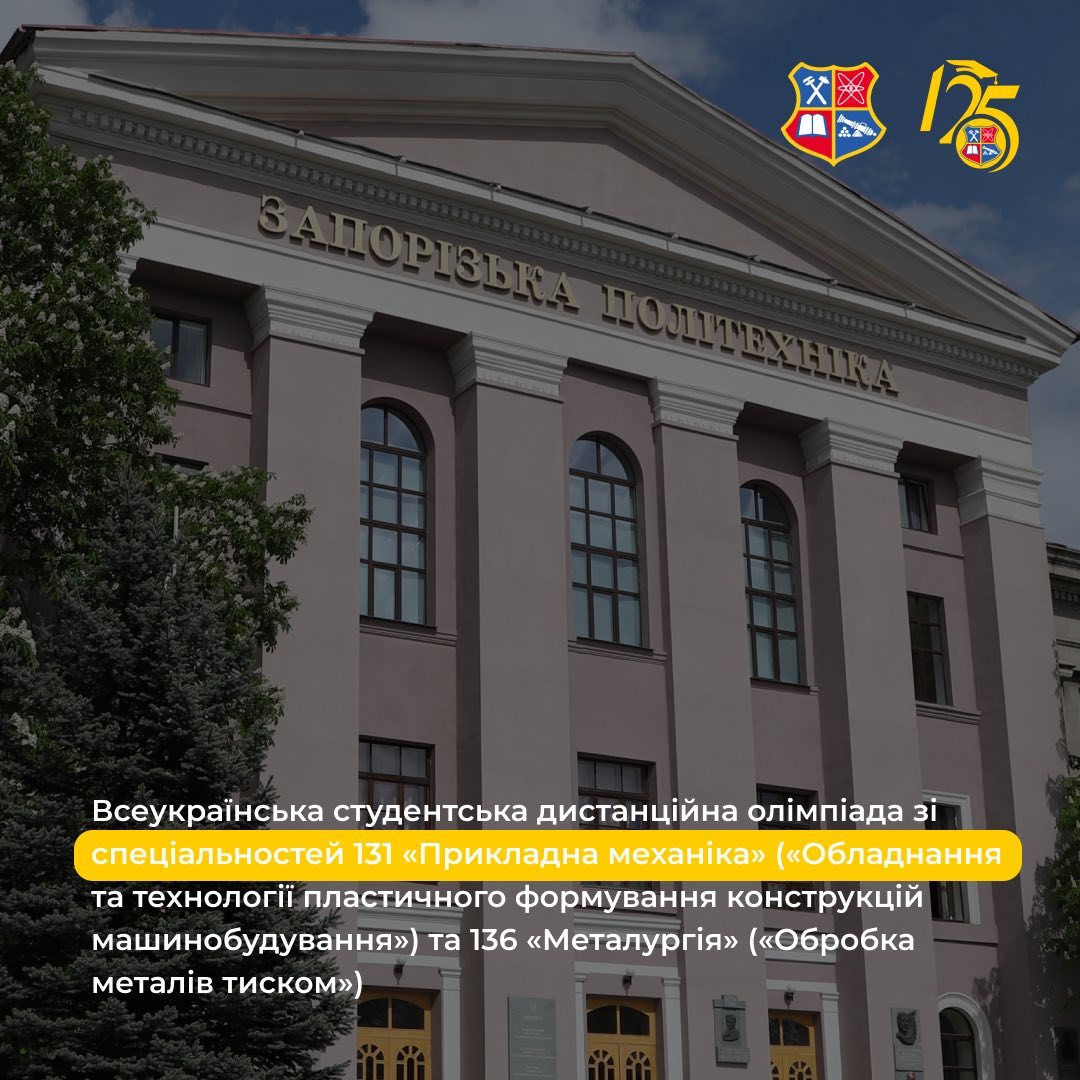23 квітня на базі кафедри обробки металів тиском відбулася Всеукраїнська студентська дистанційна олімпіада зі спеціальностей 131 «Прикладна механіка» («Обладнання та технології пластичного формування конструкцій машинобудування») та 136 «Металургія» («Обробка металів тиском»), присвячена 125-й річниці Національного університету «Запорізька політехніка»