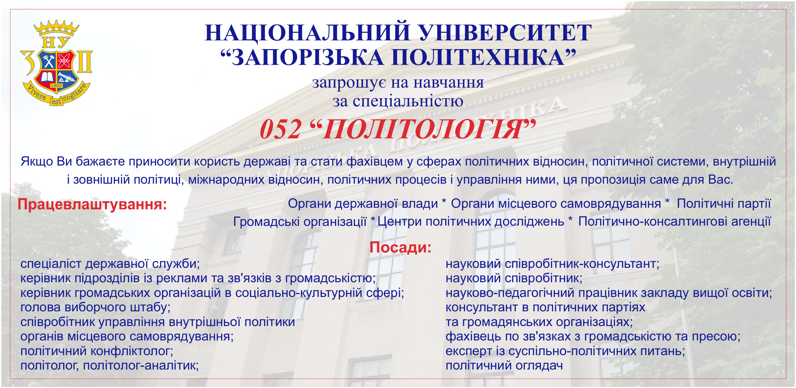 Запрошуємо до обговорення освітньо-професійних та освітньо-наукової програм “Політологія” всіх зацікавлених стейкхолдерів. Пропозиції, відгуки та побажання щодо проєктів освітніх програм просимо надсилати на електрону пошту: kirichenko_yuriy84@ukr.net