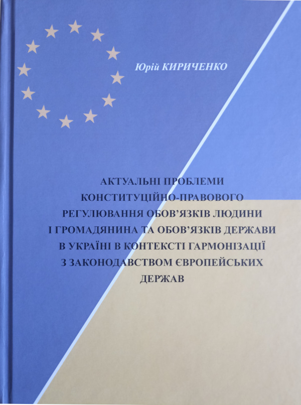 Завідувач кафедри “Політологія та загальноправові дисципліни”, доктор юридичних наук, професор КИРИЧЕНКО Юрій у рамках виконання стипендіальної роботи Верховної Ради України для молодих учених-докторів наук підготував монографію на тему: “Актуальні проблеми конституційно-правового регулювання обов'язків людини і громадянина та обов'язків держави в Україні в контексті гармонізації з законодавством європейських держав”.