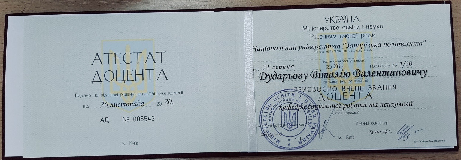 Вітаємо Щербину Сергія Степановича та Дударьова Віталія Валентиновича з отриманням атестатів доцента!