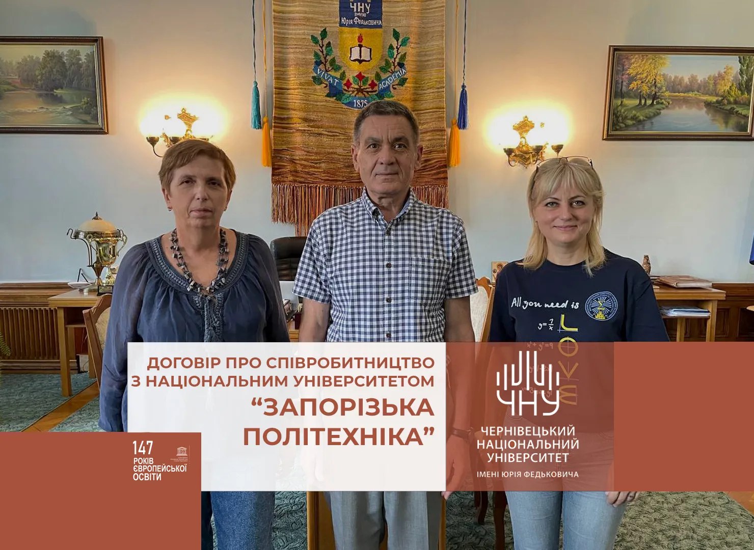 29 вересня 2023 року відбулося підписання договору про співробітництво Чернівецького національного університету імені Юрія Федьковича, в особі ректора Романа Петришина, та Національного університету «Запорізька політехніка», в особі ректора Віктора Грешти. Учасниками зустрічі під час підписання були декан факультету математики та інформатики Чернівецького національного університету імені Юрія Федьковича Ольга Мартинюк та доцентка кафедри системного аналізу та обчислювальної математики Запорізької політехніки Алла Савранська. Під час спілкування обговорили важливість співпраці, зокрема, практичної підготовки здобувачів вищої освіти спеціальності 124 "Системний аналіз", підвищення кваліфікації науково-педагогічних працівників з метою підвищення науково-теоретичного та методичного рівнів викладання навчальних дисциплін, спільної участі у наукових конференціях, семінарах, конкурсах наукових робіт як в Україні, так і за кордоном. Організація і реалізація спільних проєктів, цікавих заходів із залученням стейкхолдерів сприятиме не лише якісній професійній підготовці майбутніх фахівців ІТ галузі, але й удосконалюватиме професійну діяльність науково-педагогічних працівників.