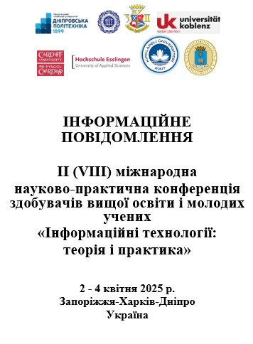 Запрошуємо  взяти участь у II (VIII) Міжнародній науково-практичній конференції здобувачів вищої освіти і молодих учених «Інформаційні технології: теорія і практика», яка відбудеться 2 – 4 квітня 2025 року на базі Національного університету «Запорізька політехніка».