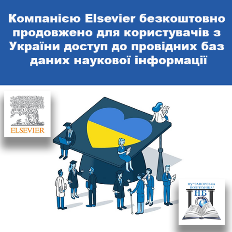 Компанія Elsevier надає підтримку українським дослідникам, науково-педагогічним працівникам та студентам, пропонуючи безкоштовний доступ до власних інструментів, наборів даних та освітніх рішень – ScienceDirect, Scopus, Researcher Discovery, SciVal та Funding Institutional. Відповідна інформація представлена на офіційному сайті Elsevier.
