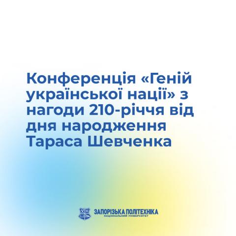 Запрошуємо всіх охочих узяти участь у конференції «Геній української нації» з нагоди 210-річчя від дня народження Тараса Шевченка.