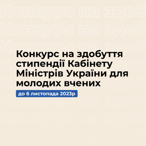 Оголошується відбір претендентів на здобуття стипендії Кабінету Міністрів України для молодих вчених.