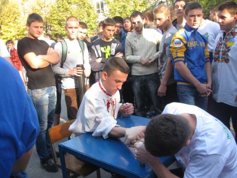 Все розпочалося з урочистого гімну нашої держави. Кожен присутній співав гімн, і це виглядало надзвичайно патріотично. Було дуже святково. Хлопці кожної з команд були одягнуті у вишиванки. І така кількість юних козаків дуже приваблювала дівчат, які проходили повз них.