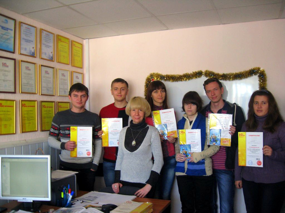 у січні 2014 року відбулося стажування наших студентів на базі Центру Сертифікованого Навчання, по закінченні якого вони успішно здали сертифікаційний іспит на знання основних механізмів платформи «1С:Підприємство 8.2». та отримали відповідні Сертифікати «1С:Фахівець»;