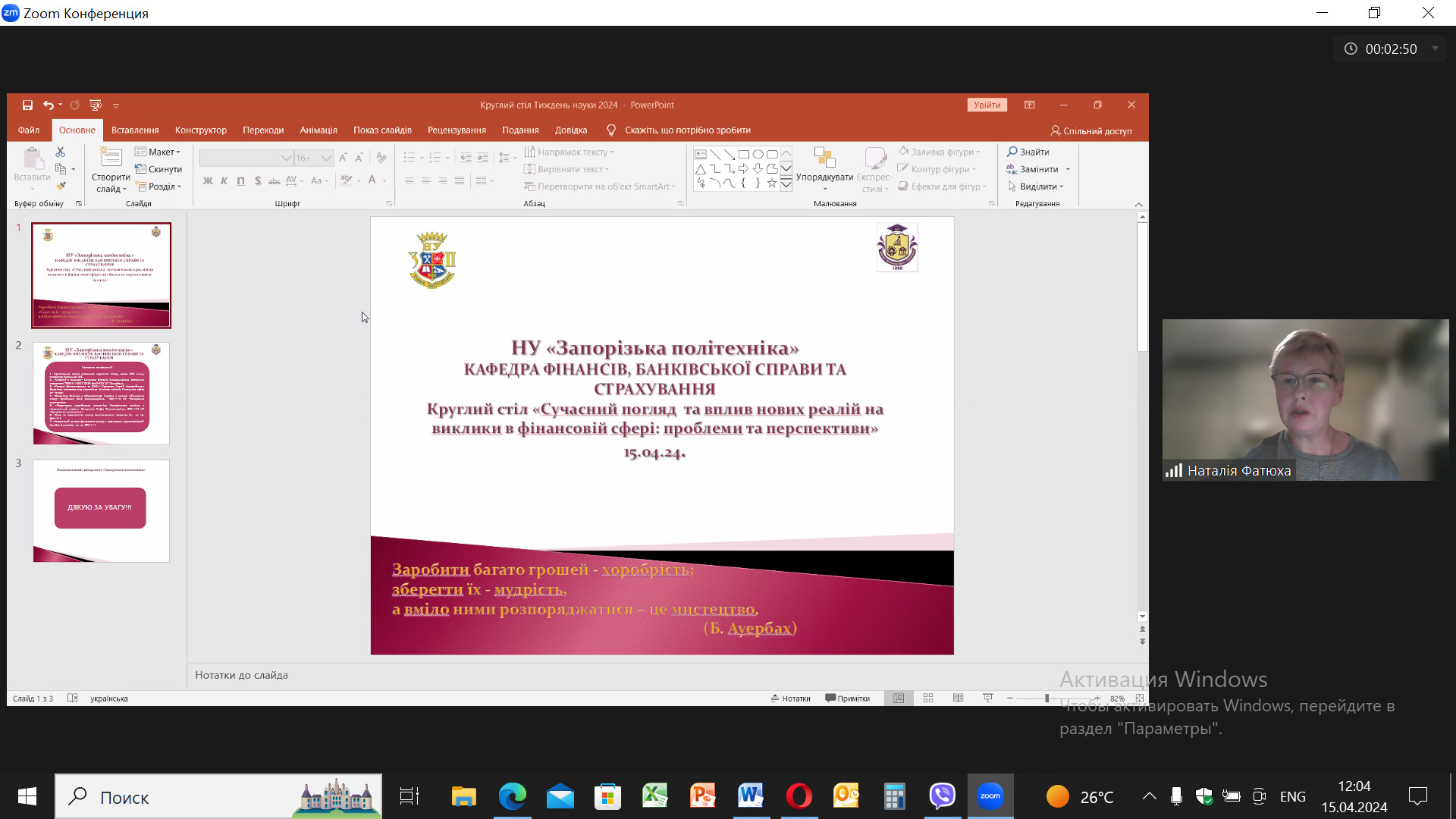 2. «Стартуй з Ощадом» — В. Сипякова, заступниця керівника ТВБВ N 10007/0265 філії-ЗОУ АТ «Ощадбанк».