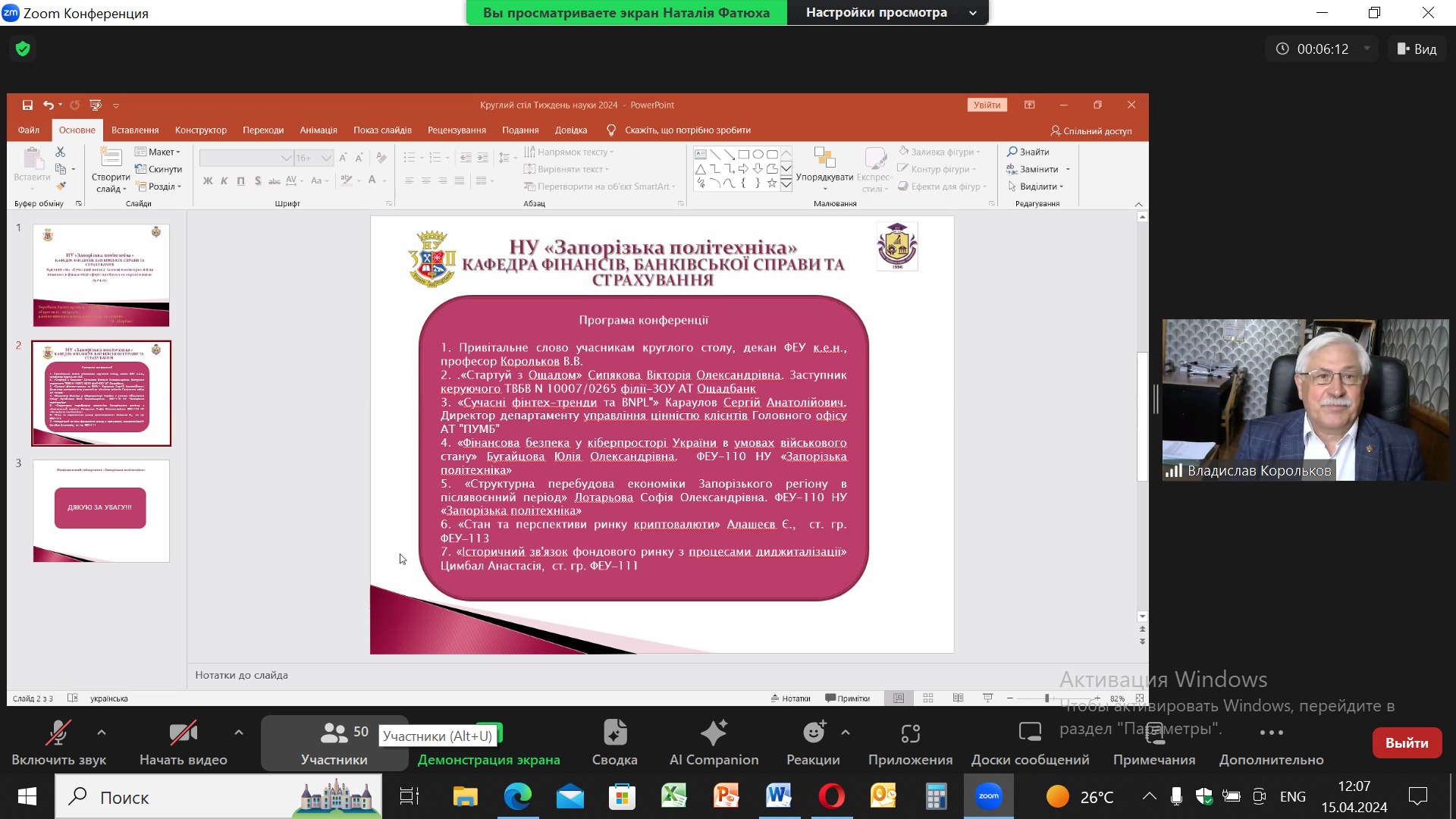 З нагоди 30-річчя факультету економіки та управління 15 квітня в межах щорічної науково-практичної конференції «Тиждень науки-2024» відбувся круглий стіл на тему: «Сучасний погляд та вплив нових реалій на виклики у фінансовій сфері: проблеми та перспективи».