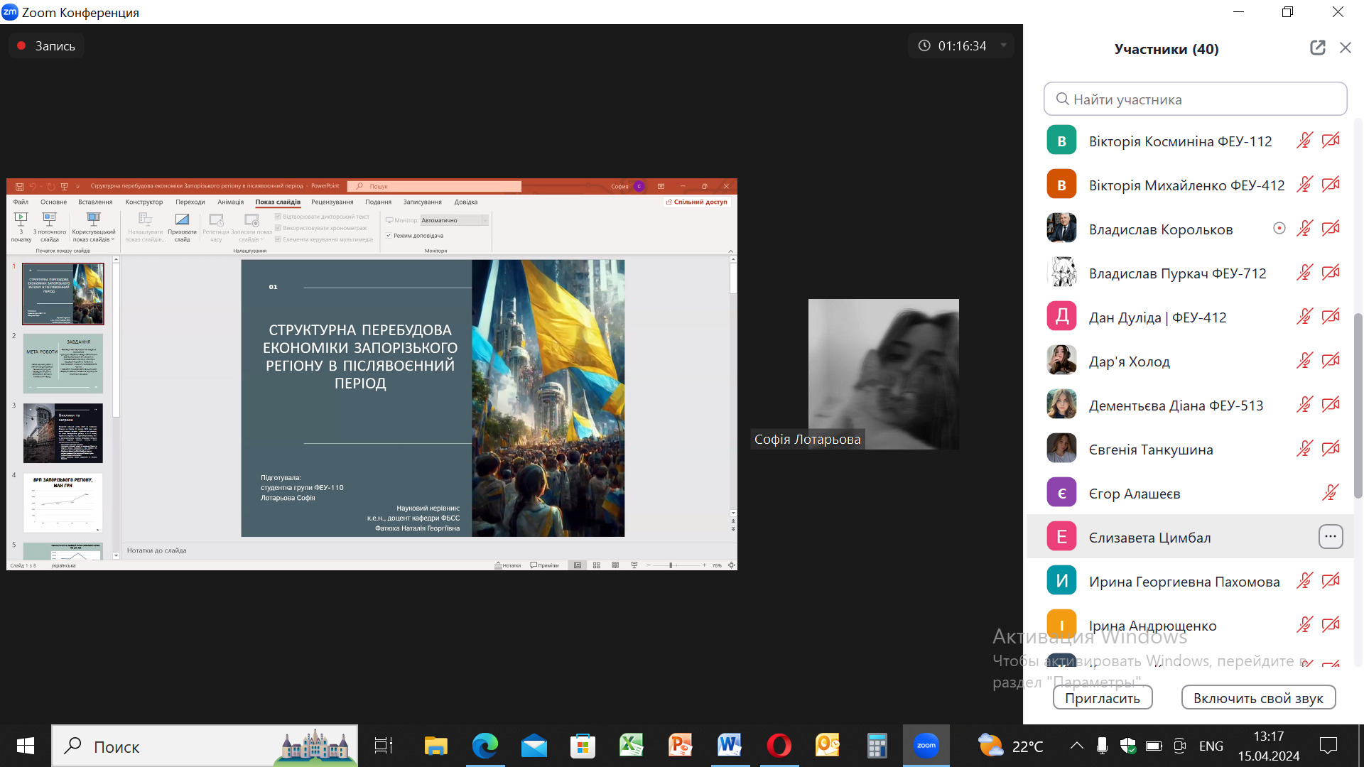 4. «Структурна перебудова економіки Запорізького регіону в післявоєнний період» — С. Лотарьова (ФЕУ-110).