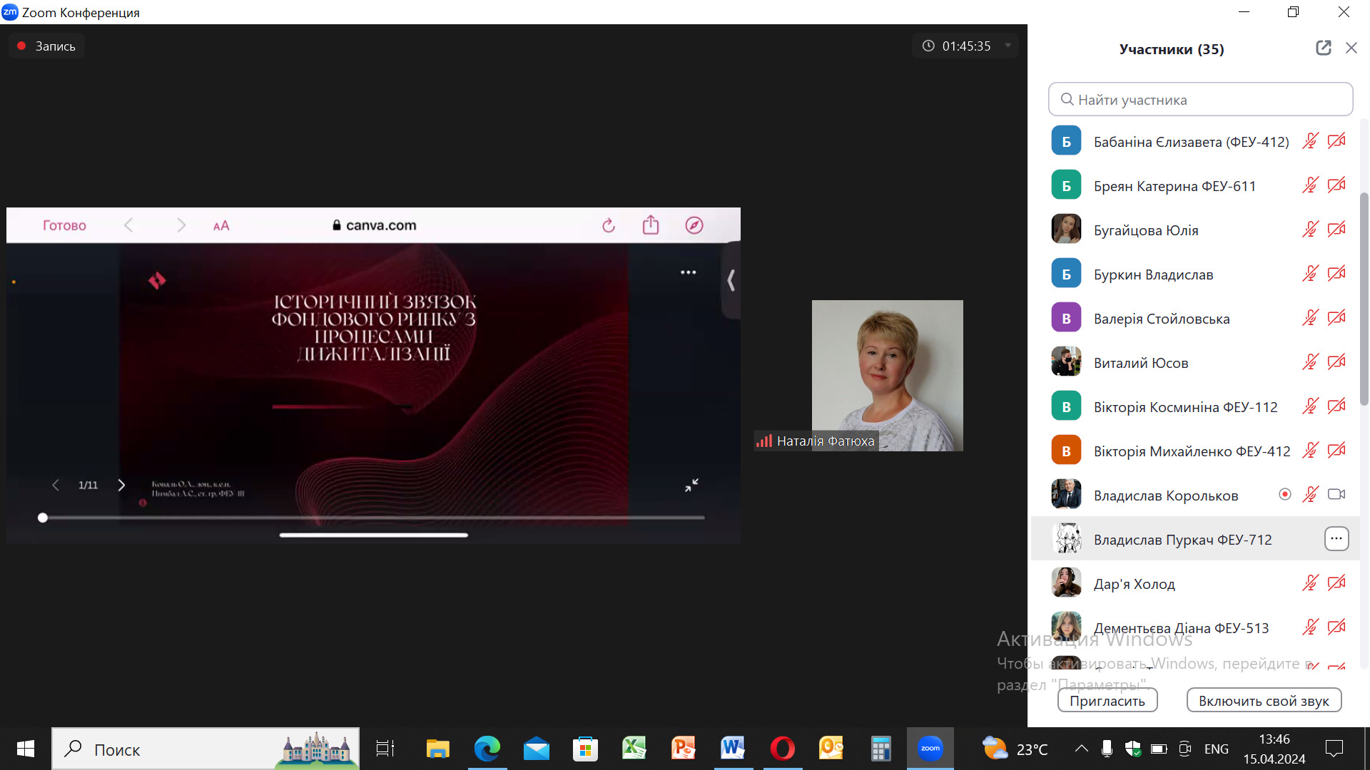 6. «Історичний зв'язок фондового ринку з процесами диджиталізації» — А. Цимбал (ФЕУ−111).