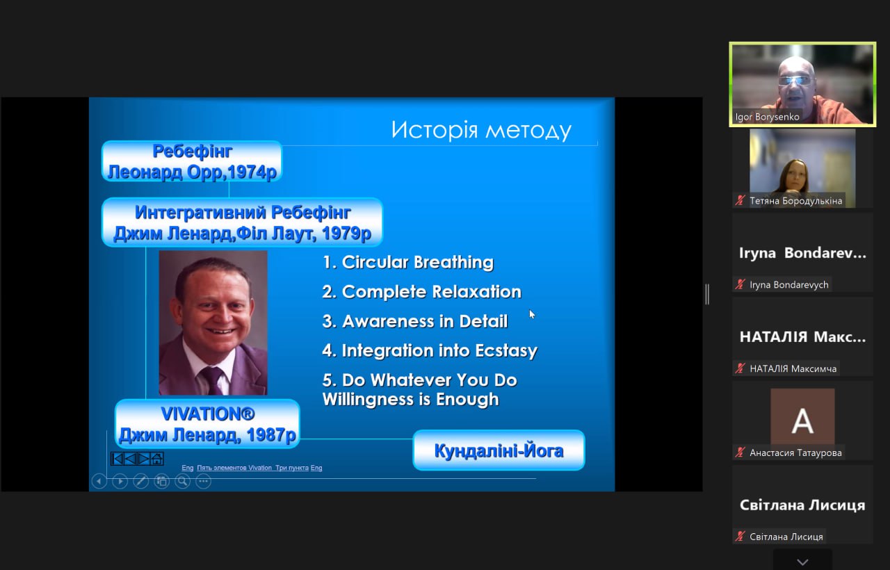 16 жовтня кафедра психології НУ «Запорізька політехніка» організувала лекцію «Інтегративні дихальні техніки (Holotropic Breathwork, Rebirthing, Vivation, Free Breathing): історія походження, подібності та відмінності».